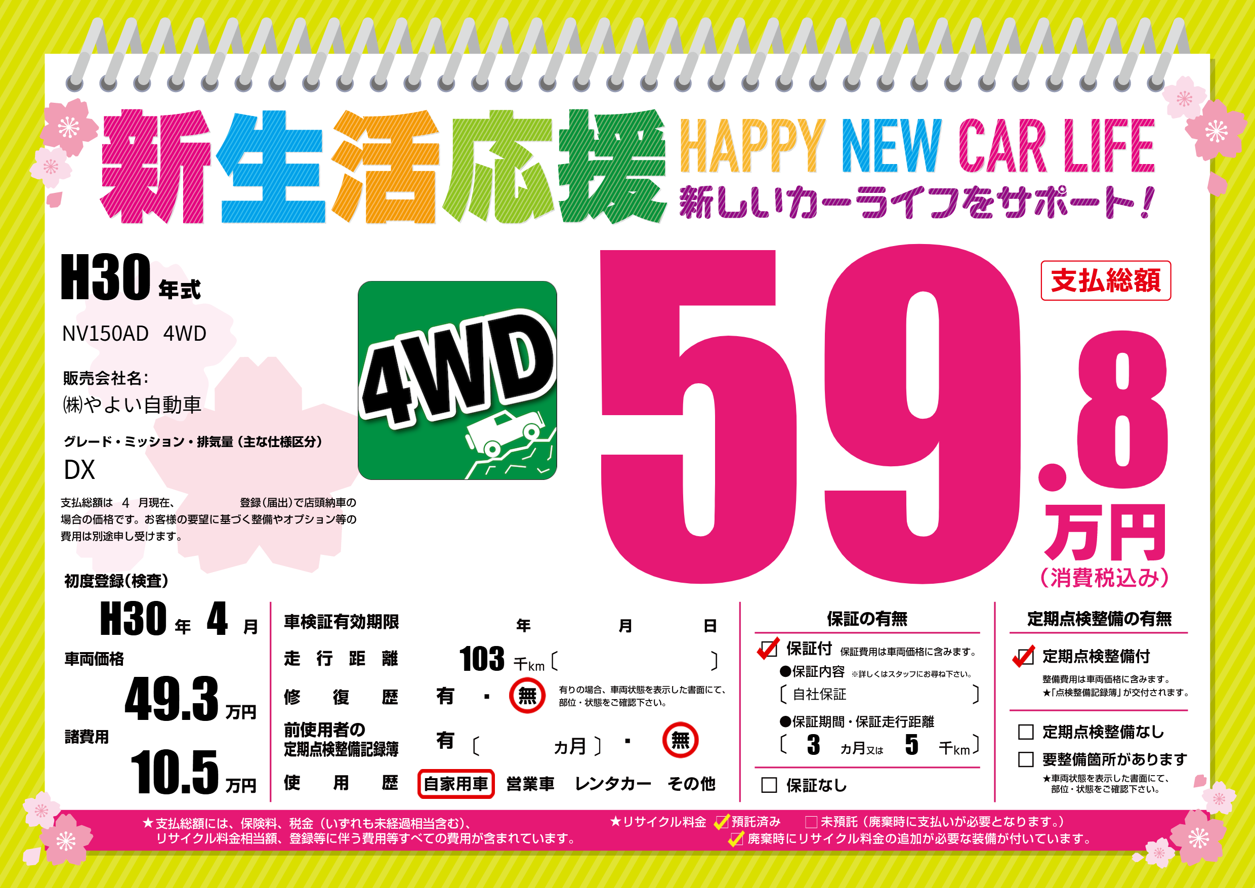 | 車名 | NV150AD 4WD | グレード ミッション 排気量 |