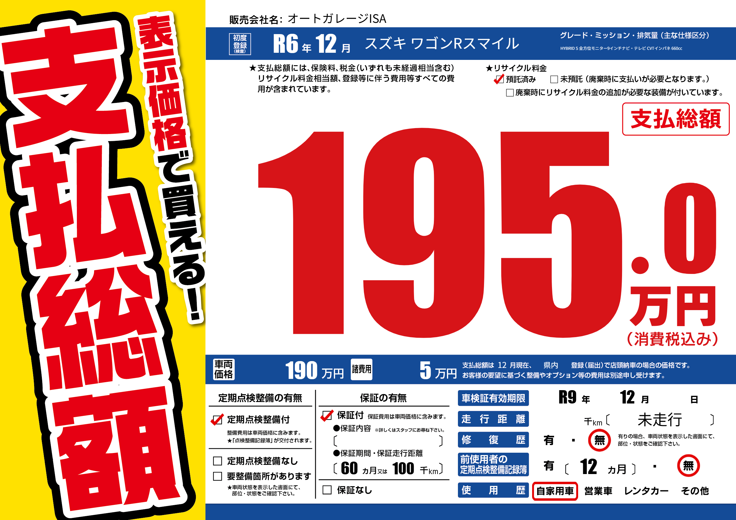 | 走行キロ | - | 初年度登録 | R6年12月 |