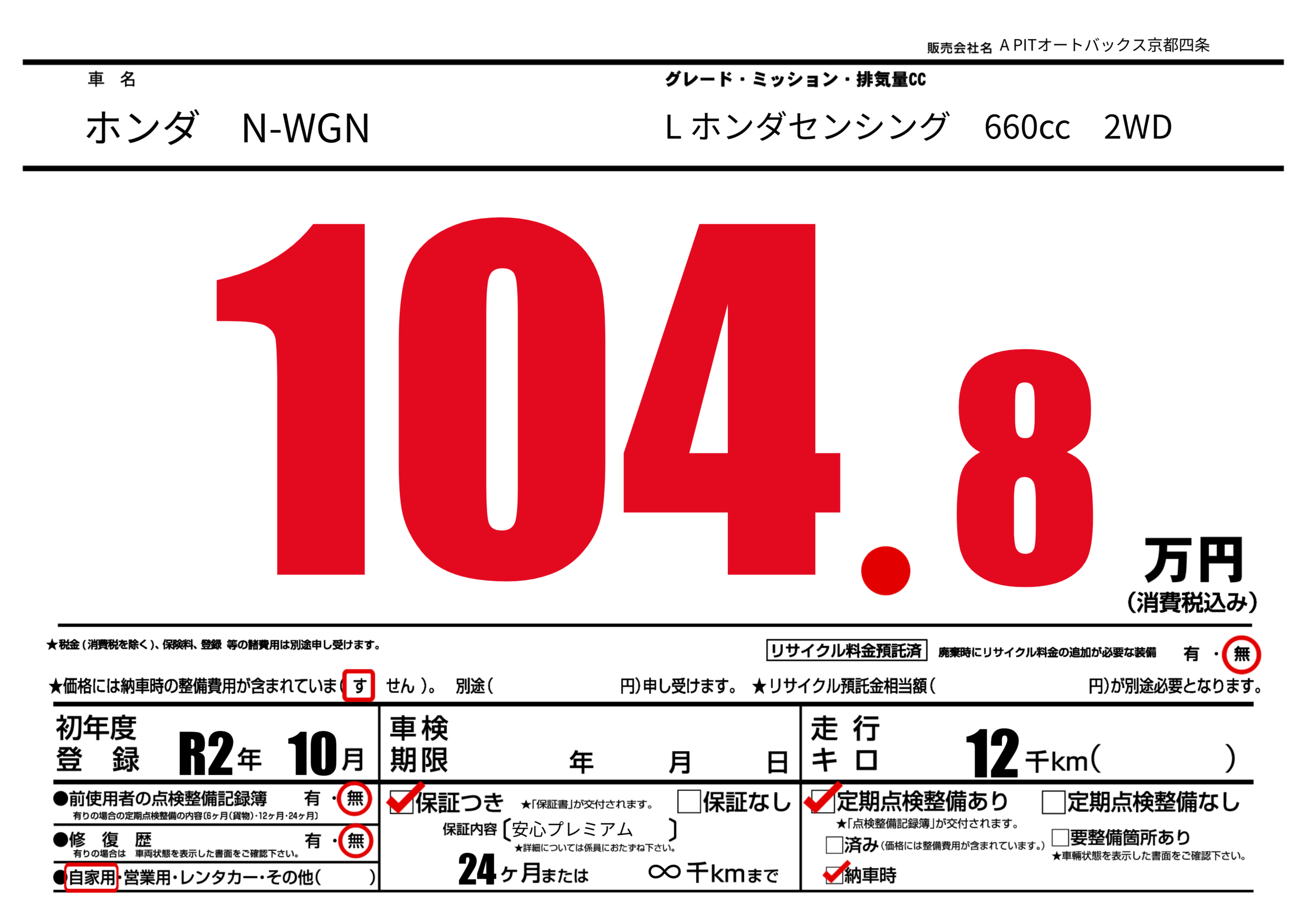 保証内容(安心プレミアム) 24ヶ月または∞千km