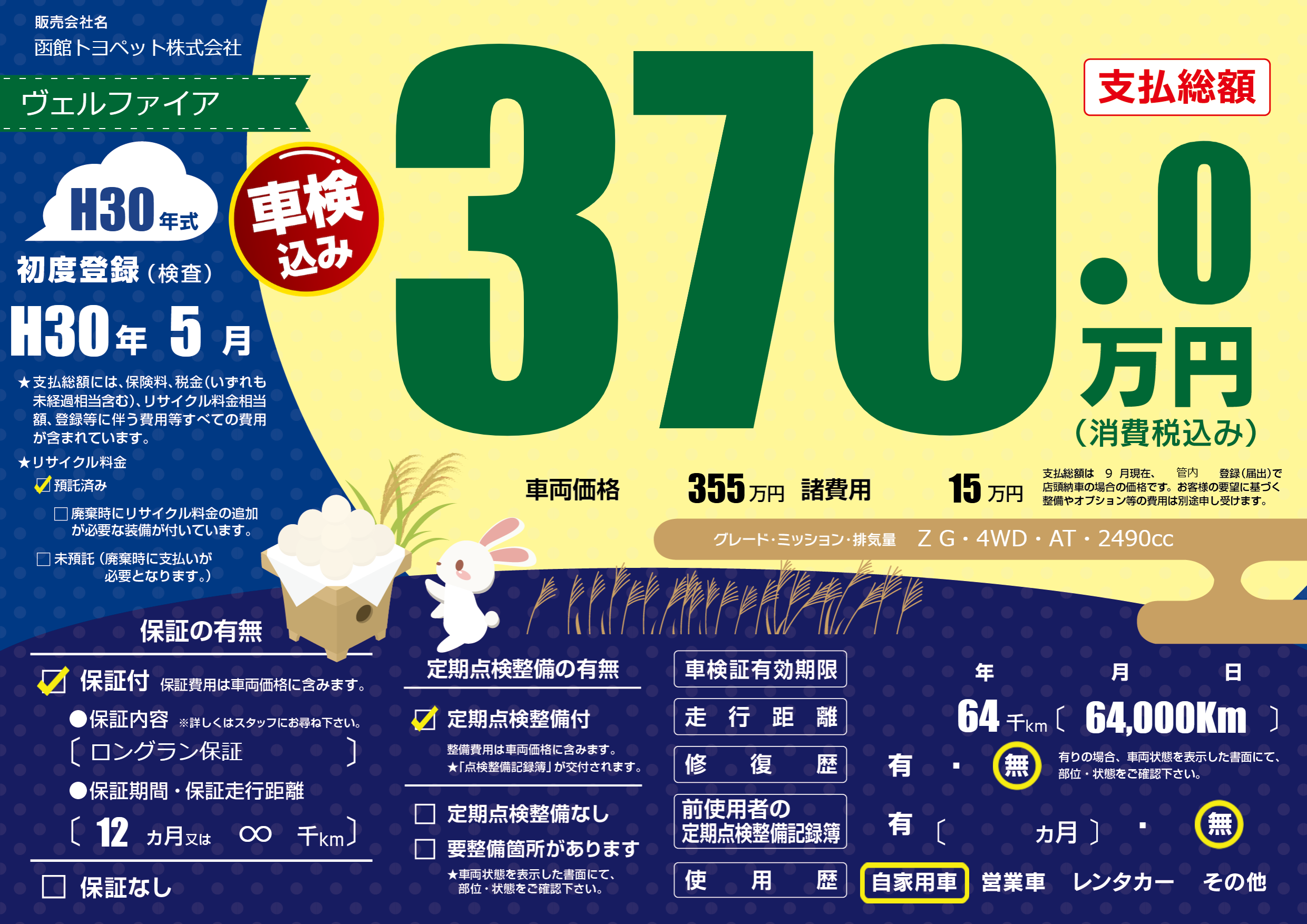 | 車名 | ヴェルファイア | グレード ミッション 排気量 |