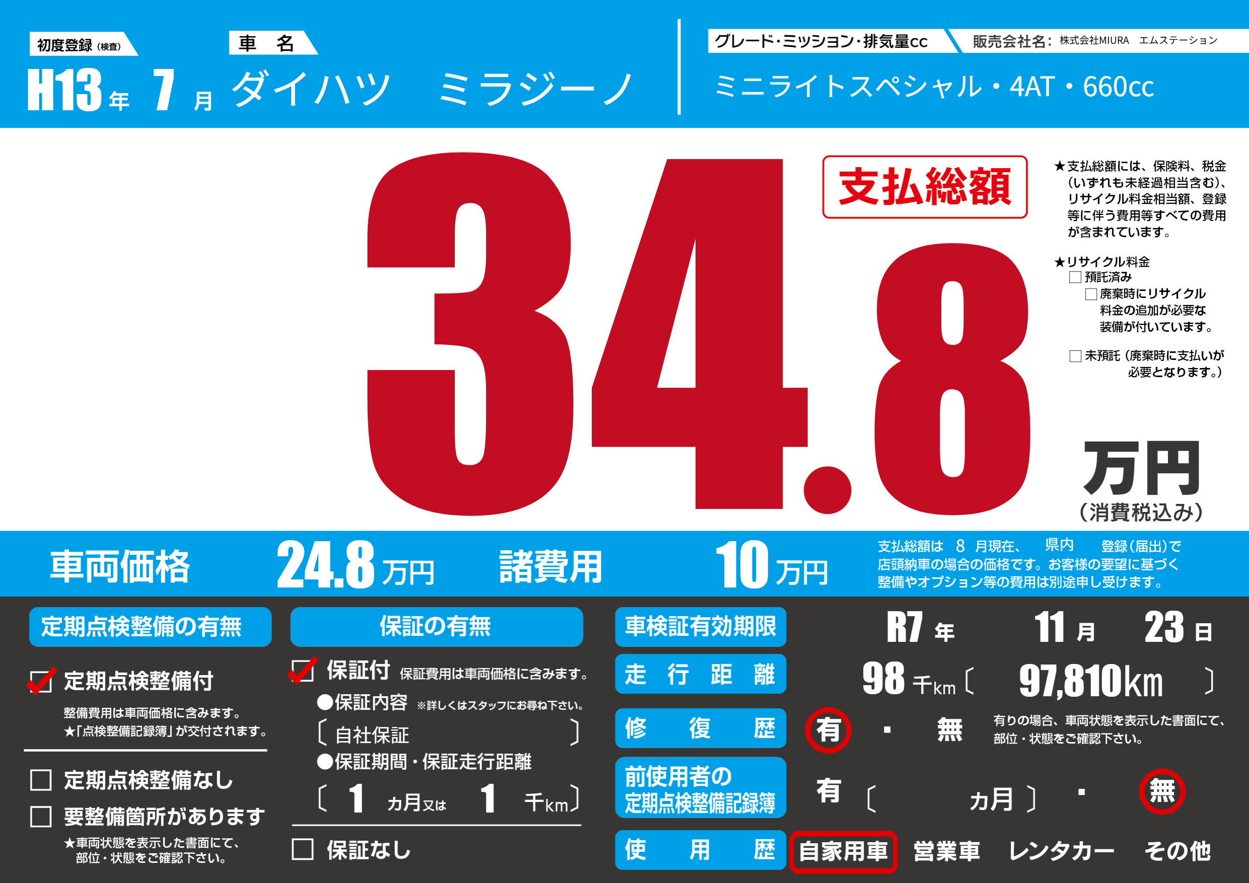 なし | 車検制限 | R7年11月23月 |