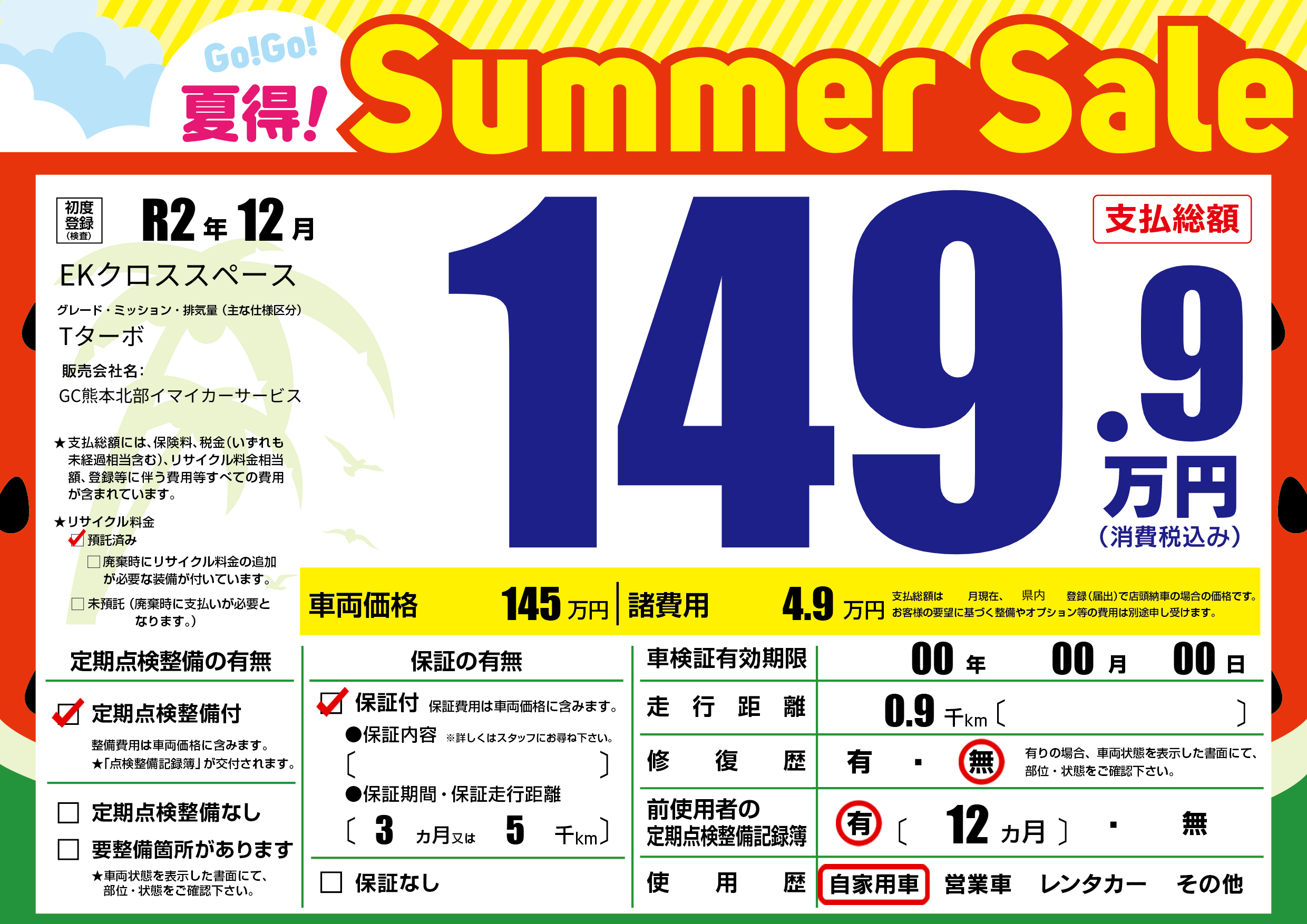 | 車検制限 | 00年 00月 00日 | ||
