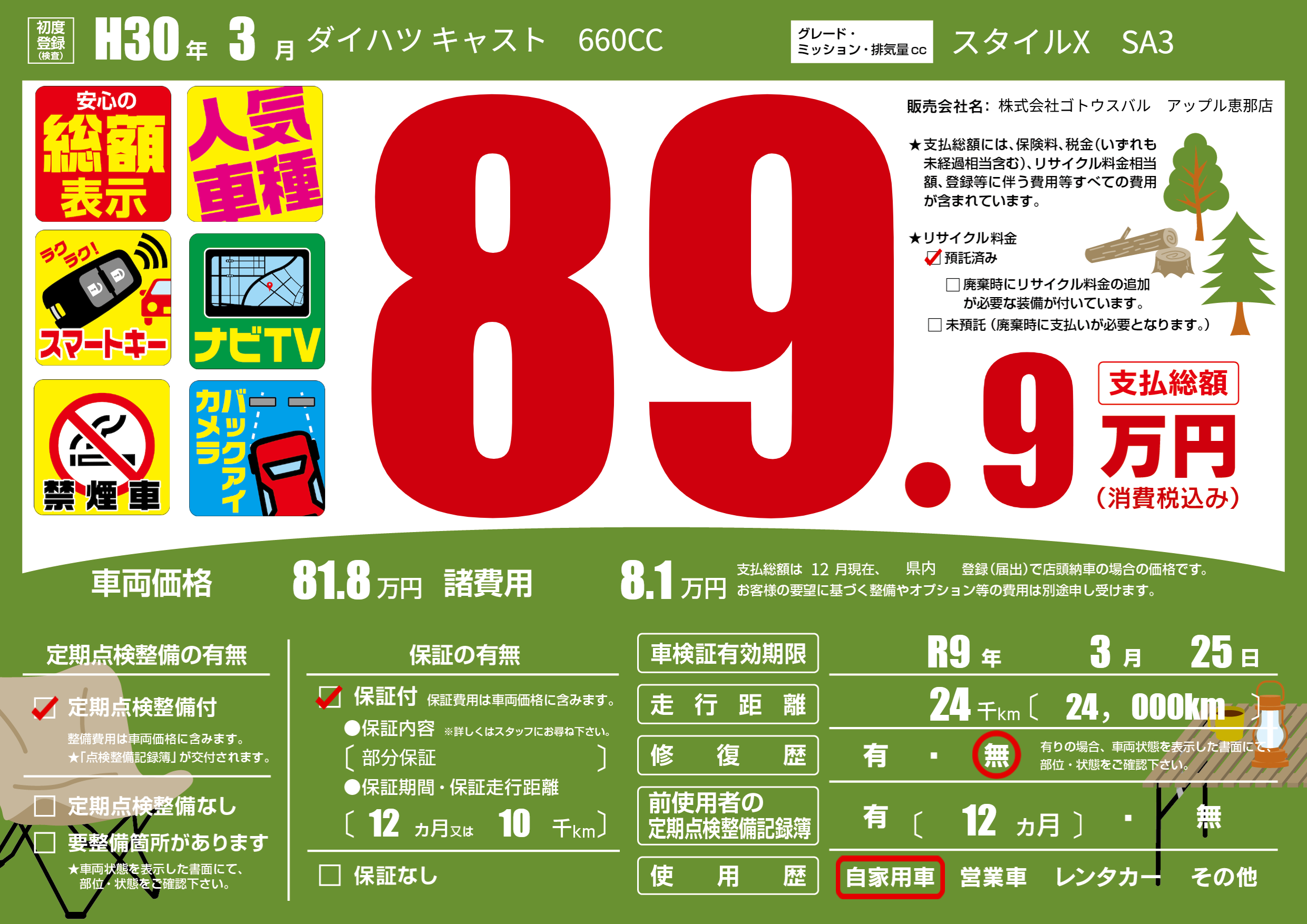 なし | 車検制限 | R9年3月25月 |