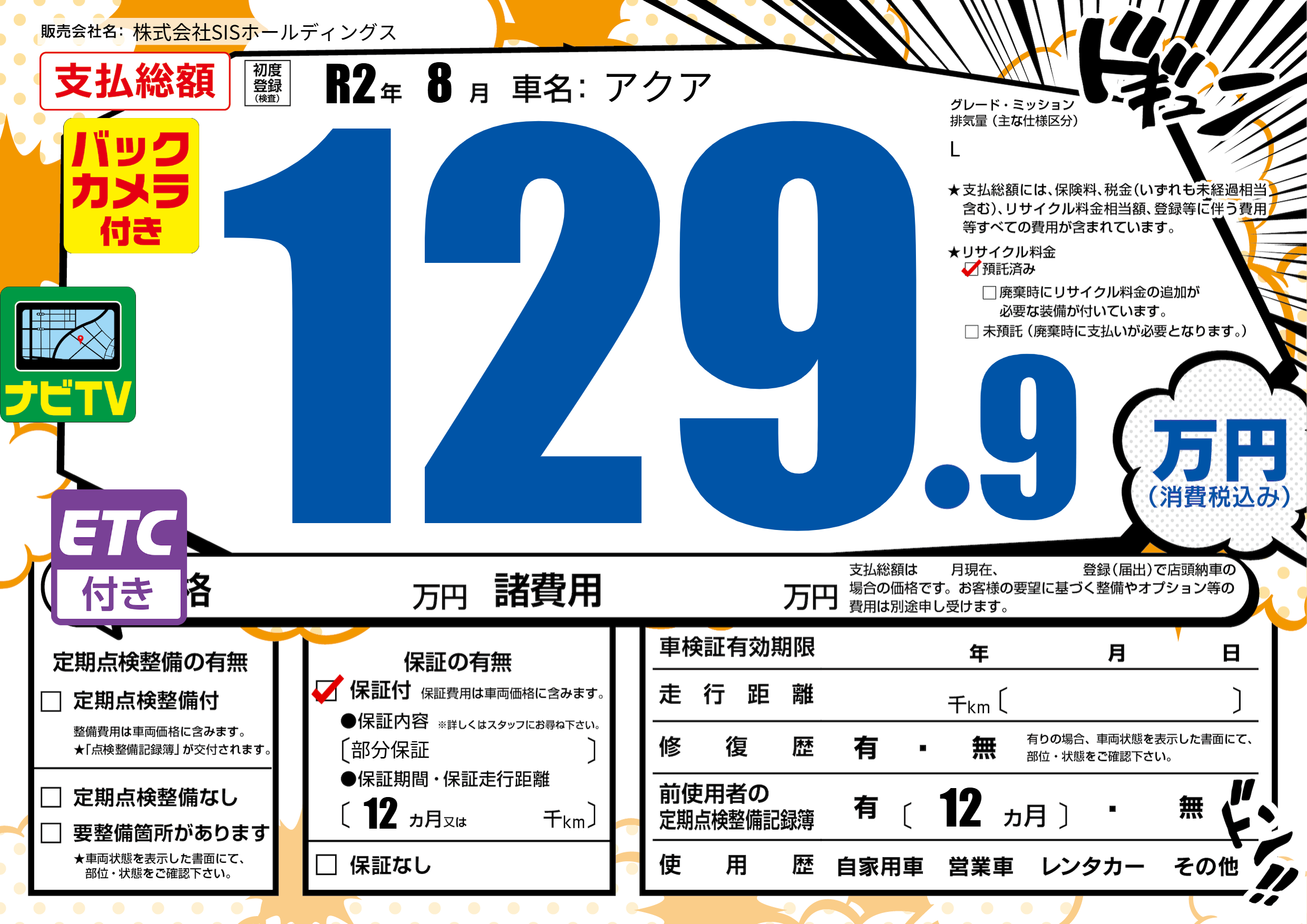 | 走行キロ | - | 初年度登録 | R2年8月 |