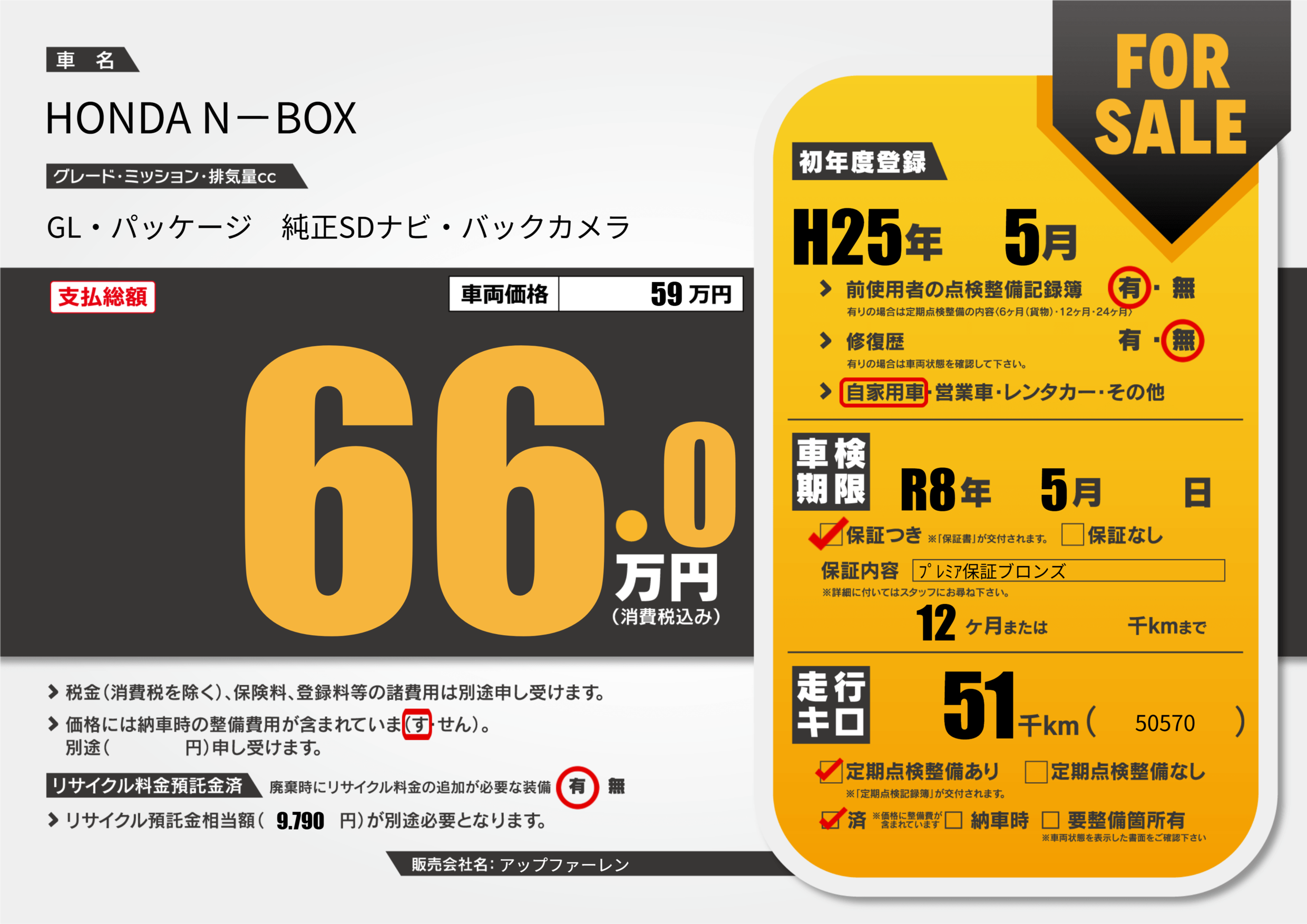 | 定期点検整備 | 定期点検整備あり 定期点検整備済み | ||