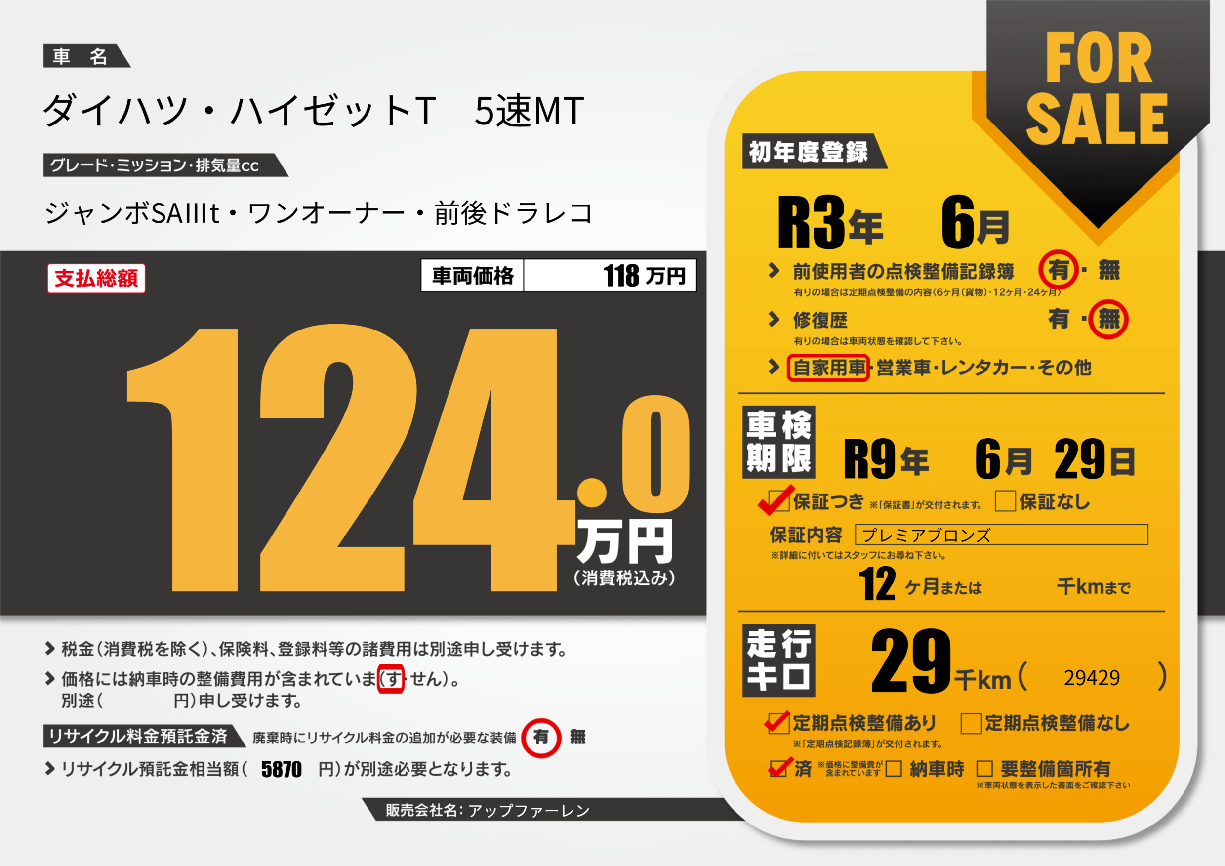 | 定期点検整備 | 定期点検整備あり 定期点検整備済み | ||
