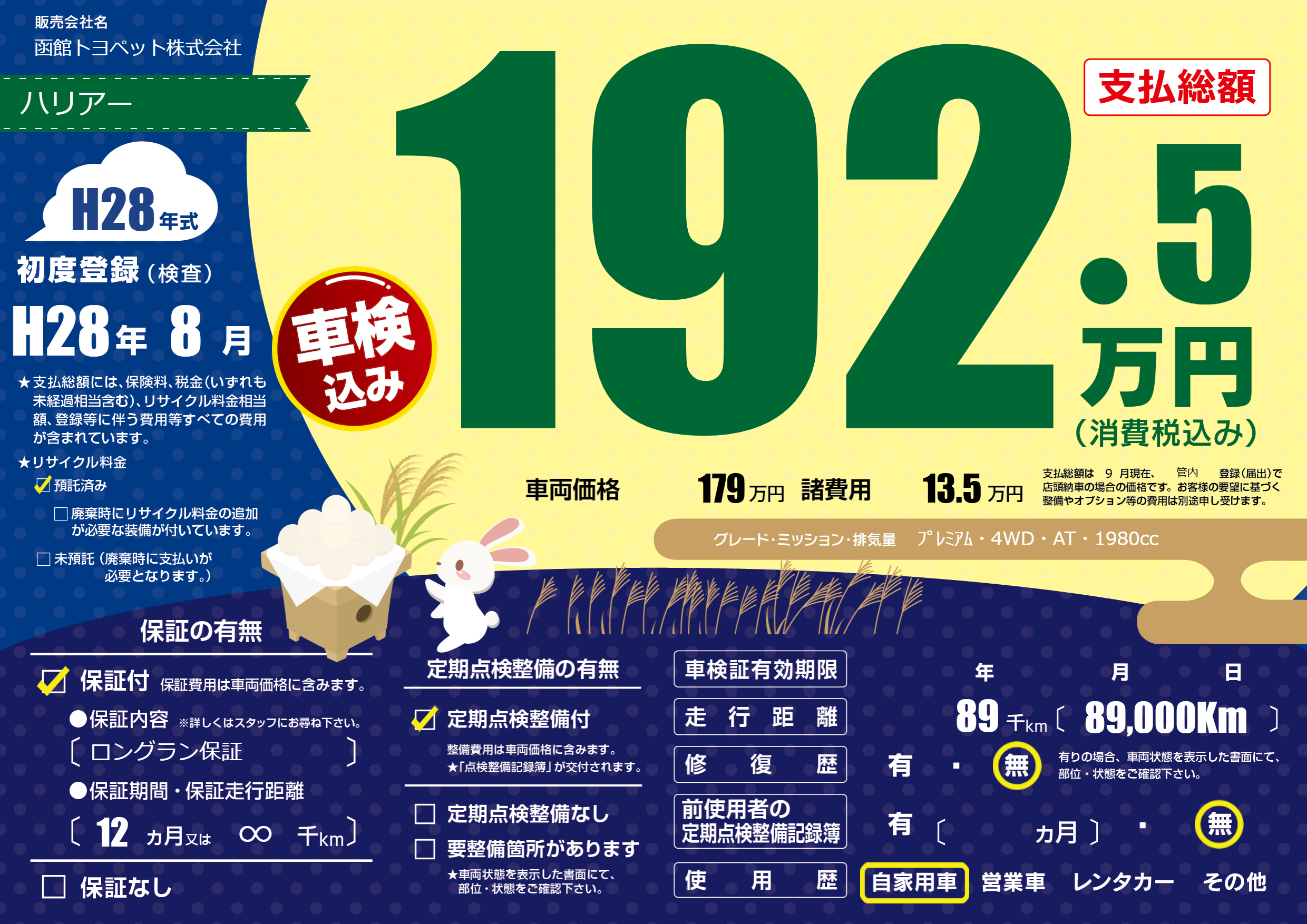 | 走行キロ | 8.9万km | ||