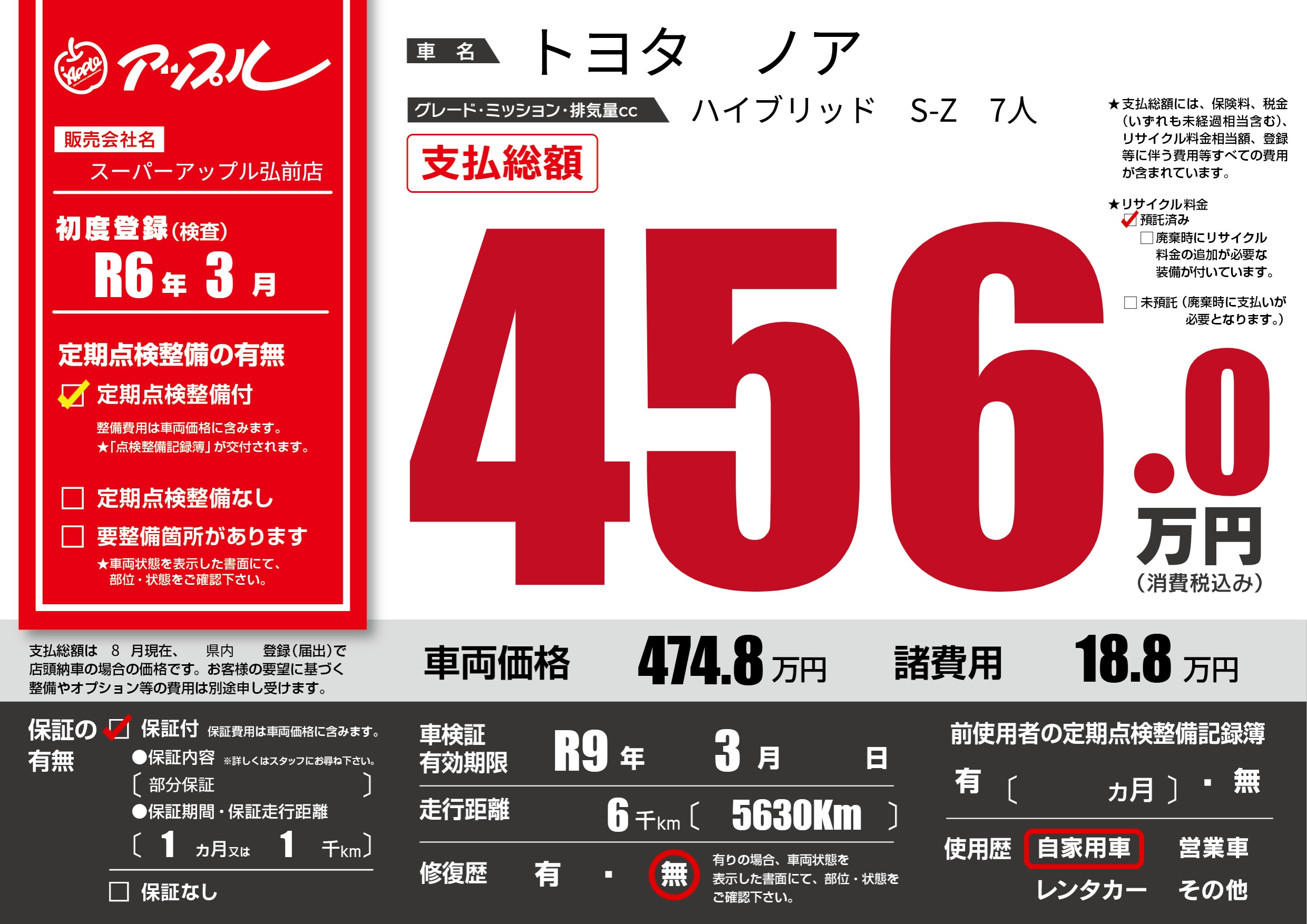 | 走行キロ | 0.6万km | 初年度登録 | R6年3月 |