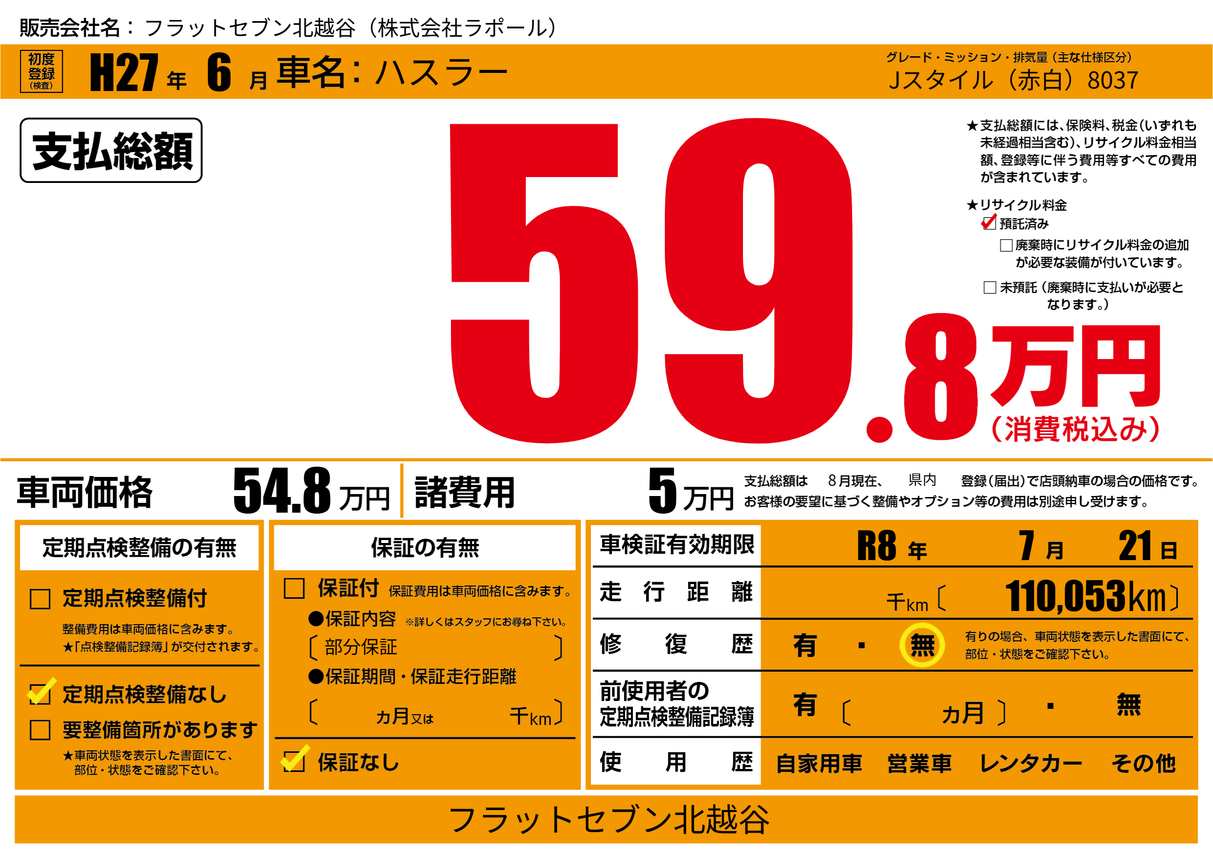 車検制限 R8年 7月 21日