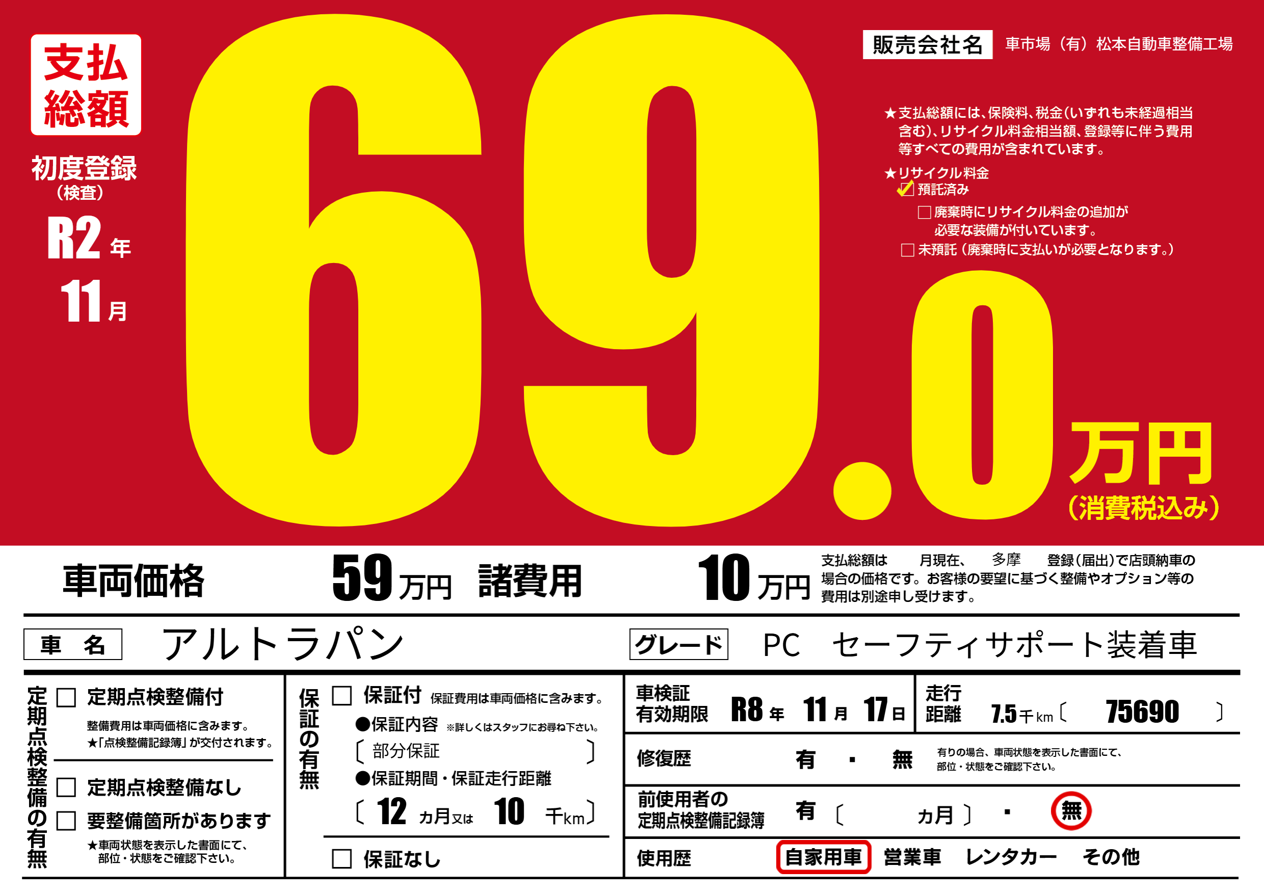 | 走行キロ | 0.7万km | 初年度登録 | R2年11月 |
