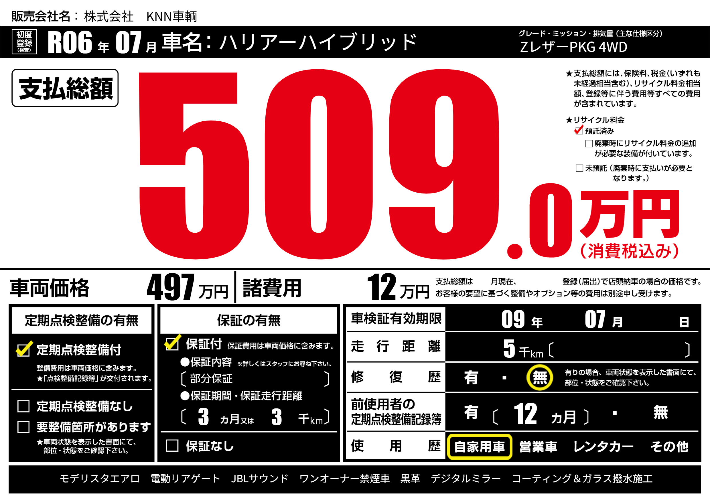 | 走行キロ | 0.5万km | 初年度登録 | R06年07月 |