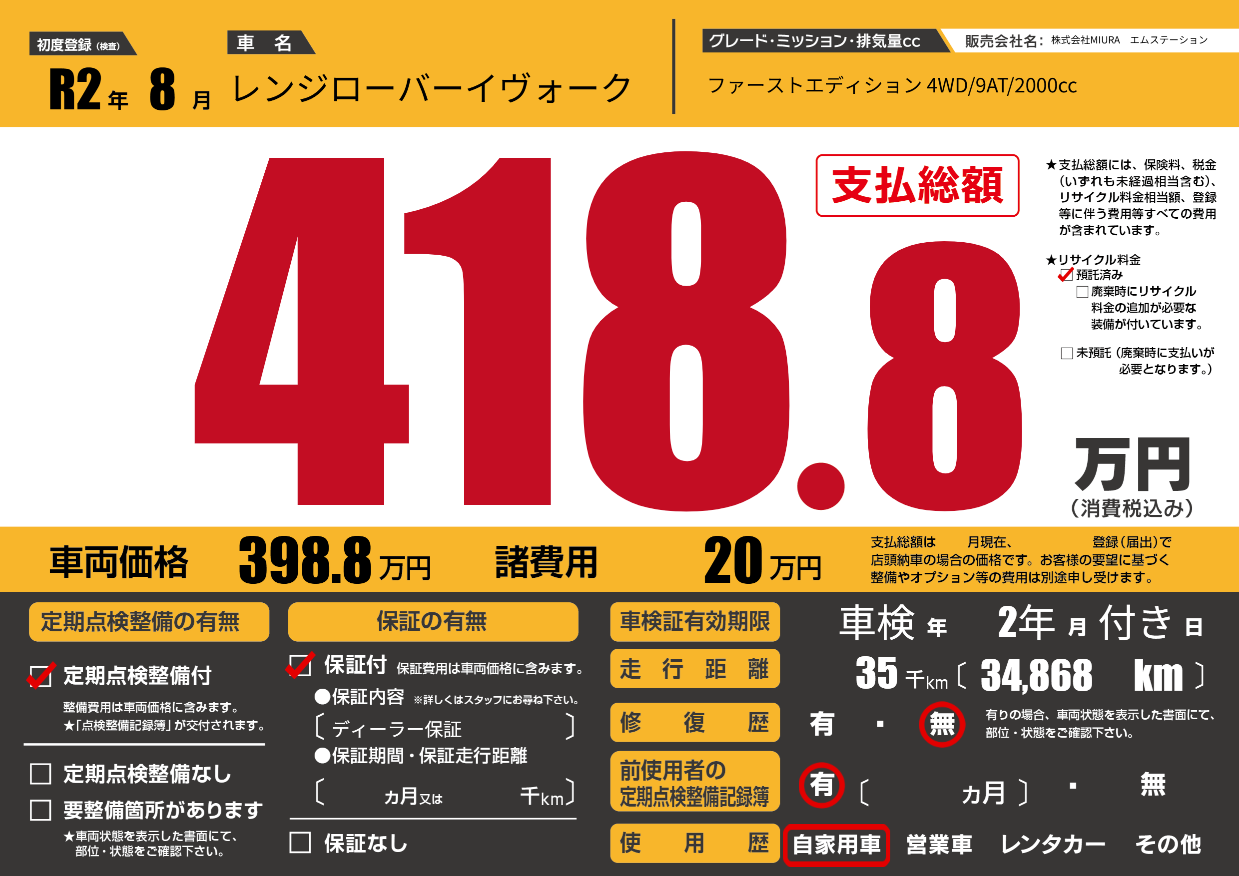 | 走行キロ | 3.5万km | 初年度登録 | R2年8月 |