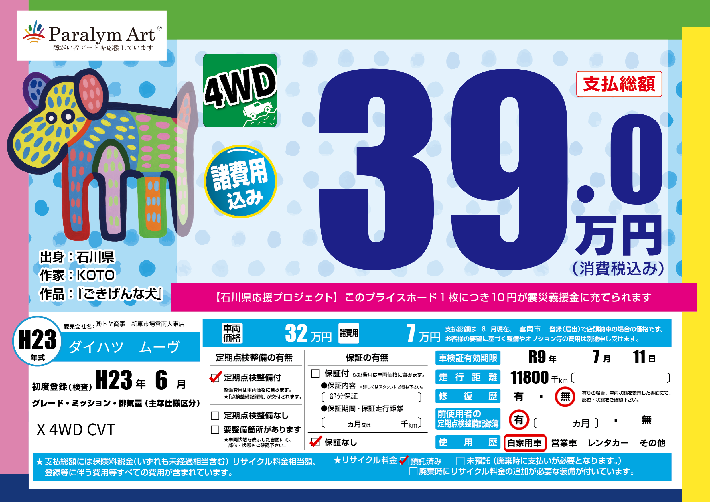| 走行キロ | 1180万km | 初年度登録 | H23年6月 |