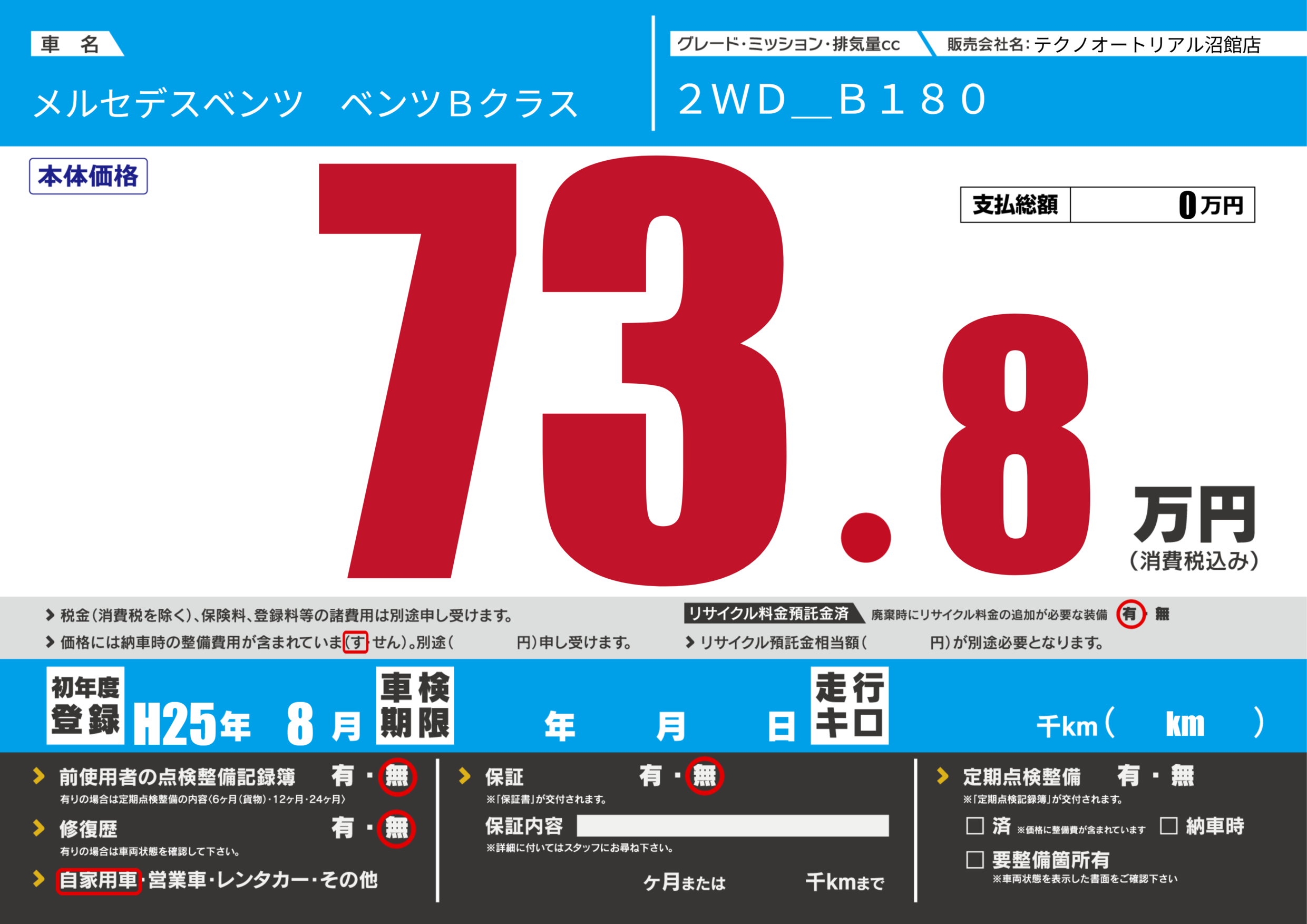 あり | リサイクル預託金相当額 | ( 0円)が別途必要 |