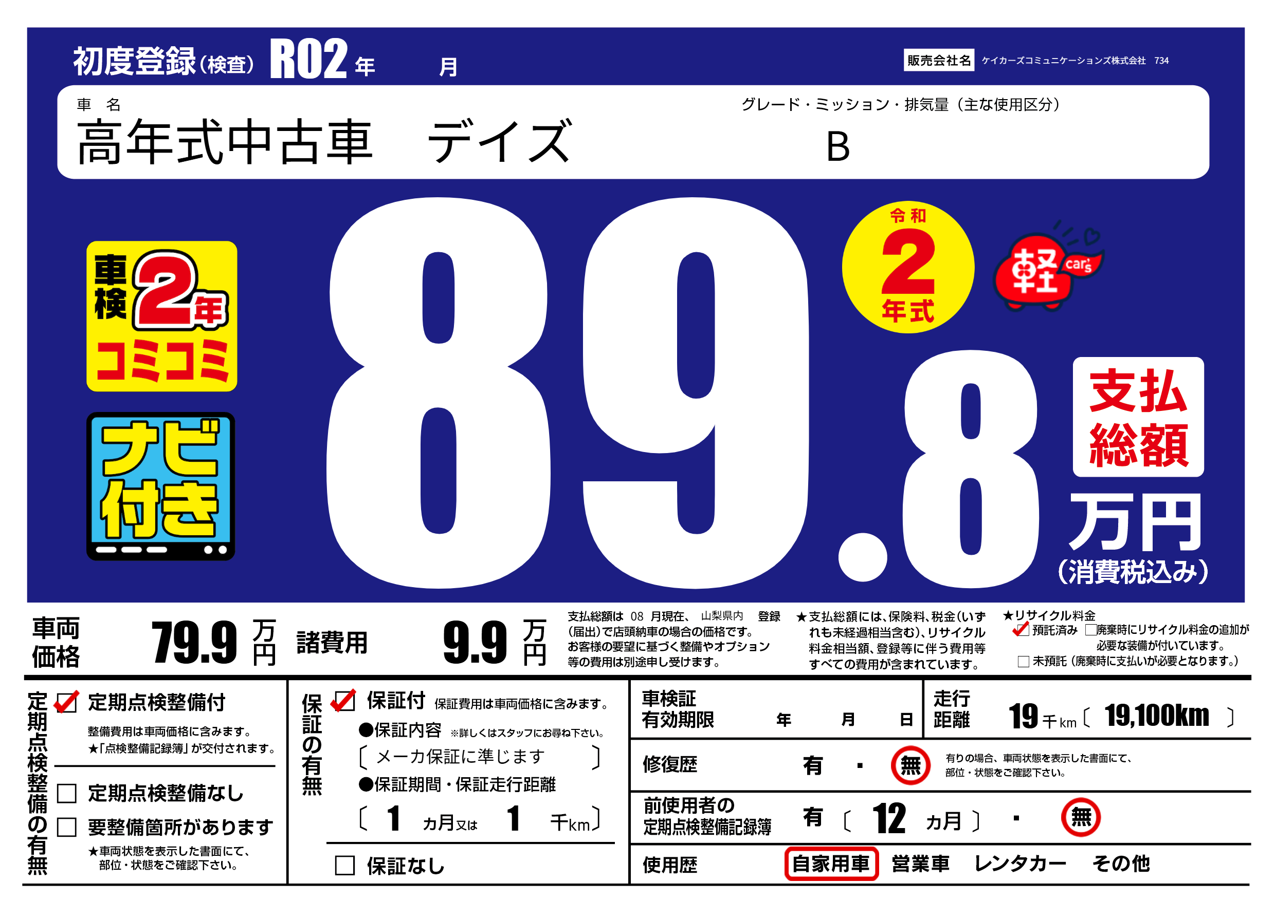 | 定期点検整備 | 定期点検整備あり | ||