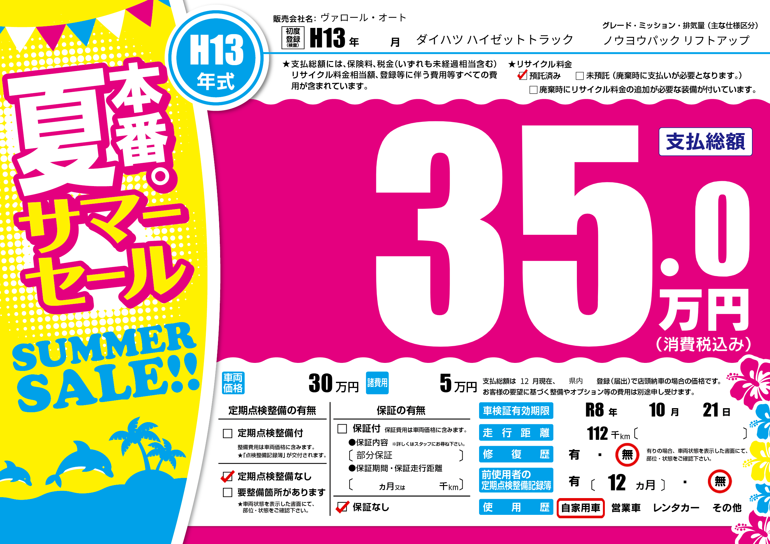 | 走行キロ | 11.2万km | 初年度登録 | H13年---月 |