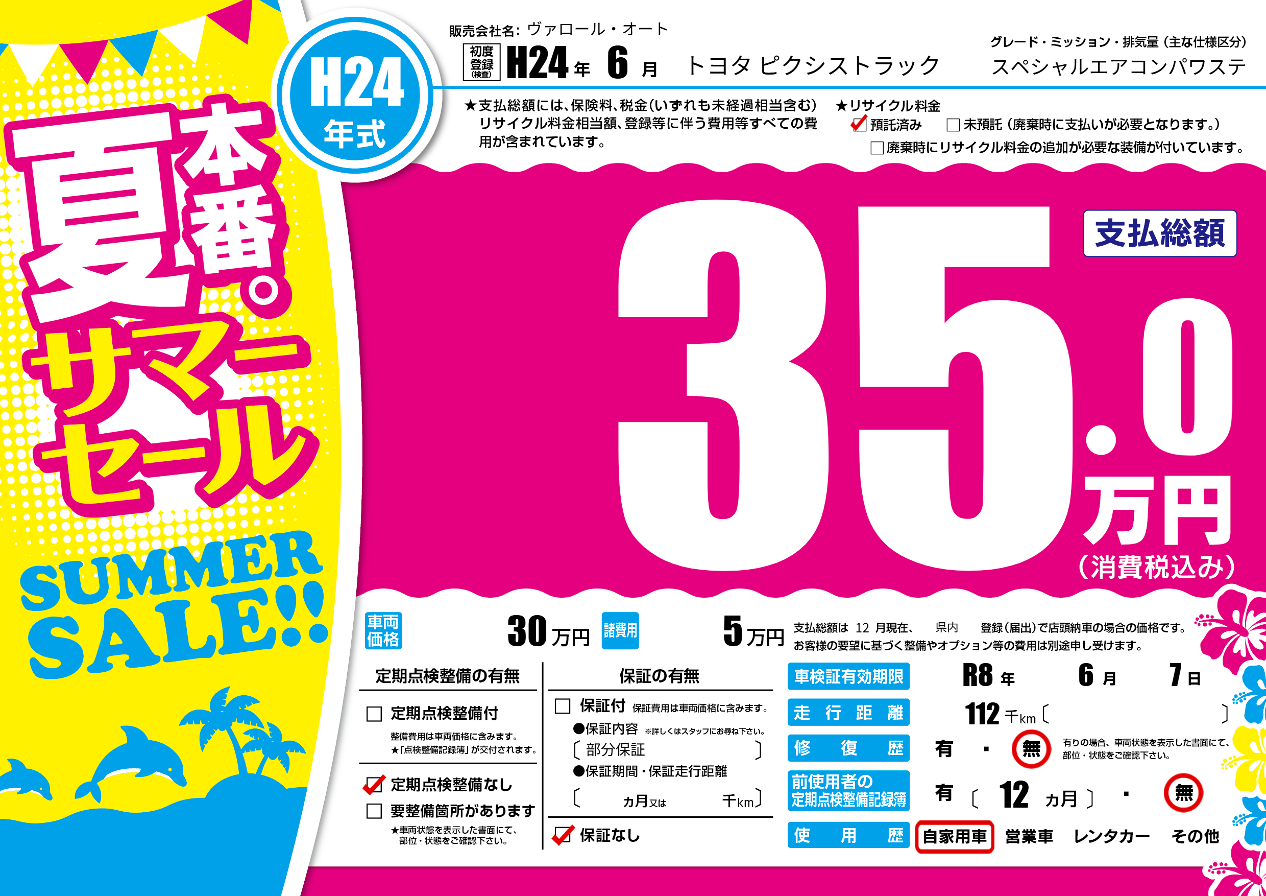 | 走行キロ | 11.2万km | 初年度登録 | H24年6月 |
