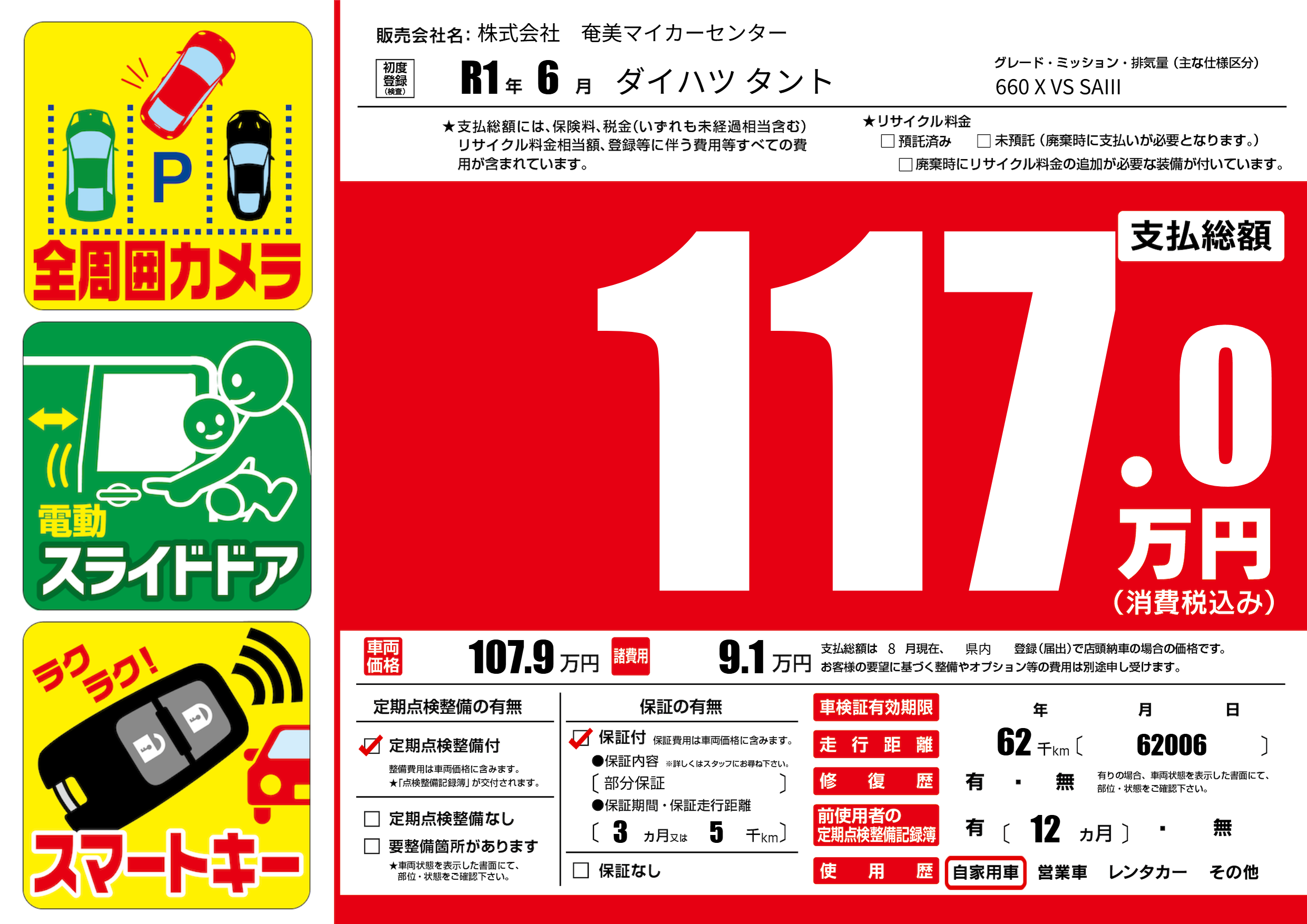| 走行キロ | 6.2万km | ||