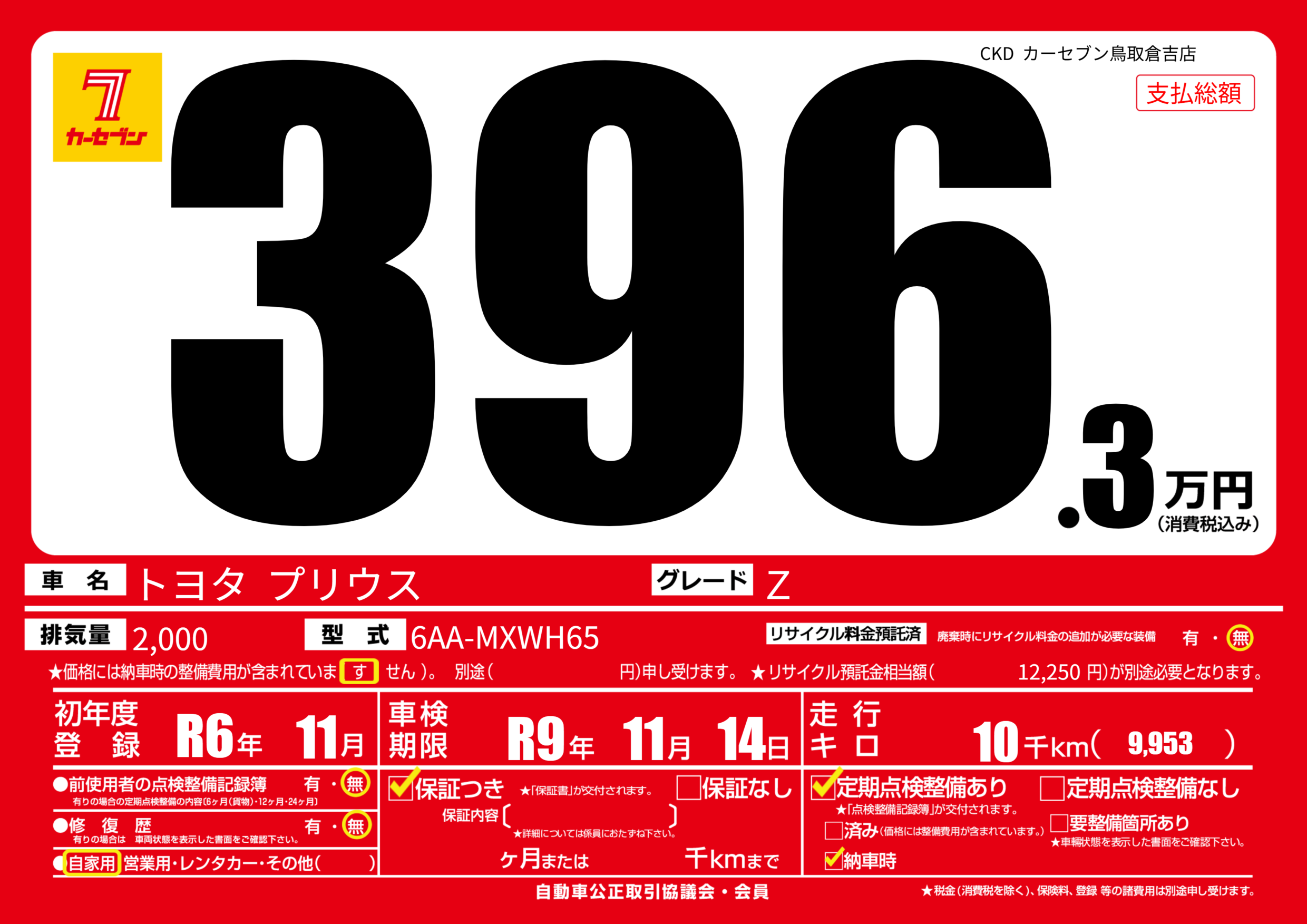 | 定期点検整備 | 定期点検整備あり 納車時あり | ||