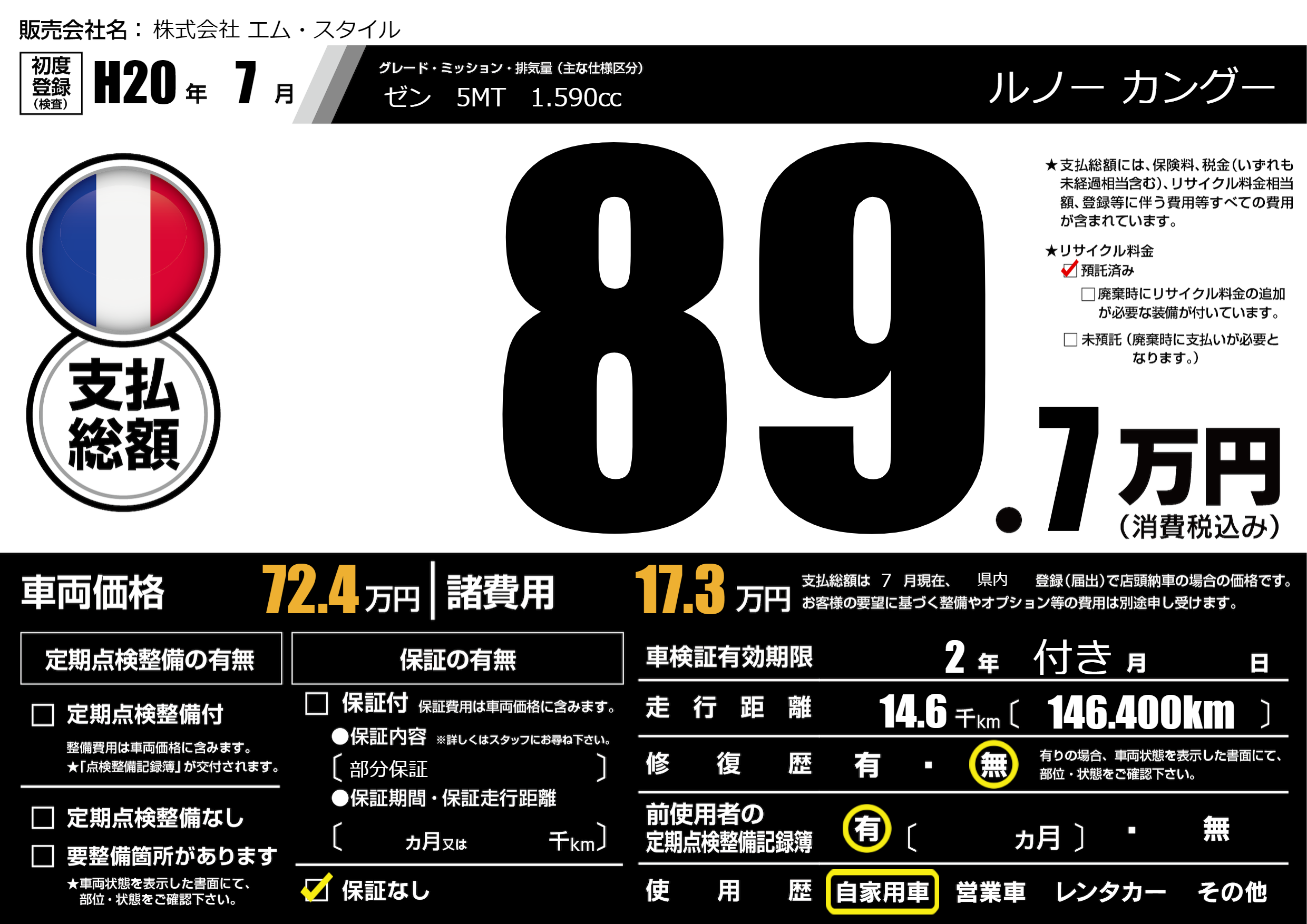 | 初年度登録 | H20年7月 | ||