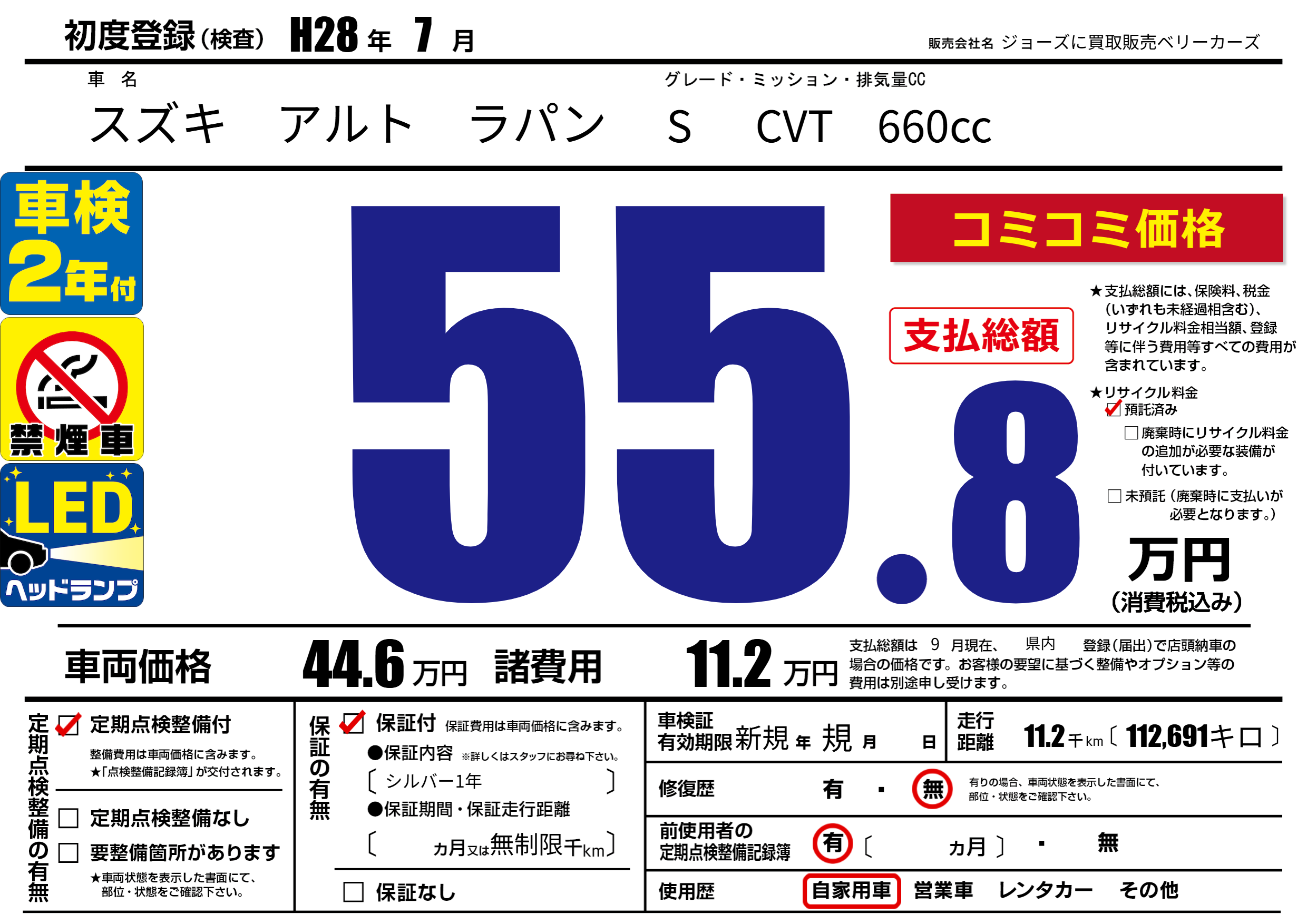 保証付き 保証内容(シルバー1年) ---ヶ月または(無制限)千kmまで |