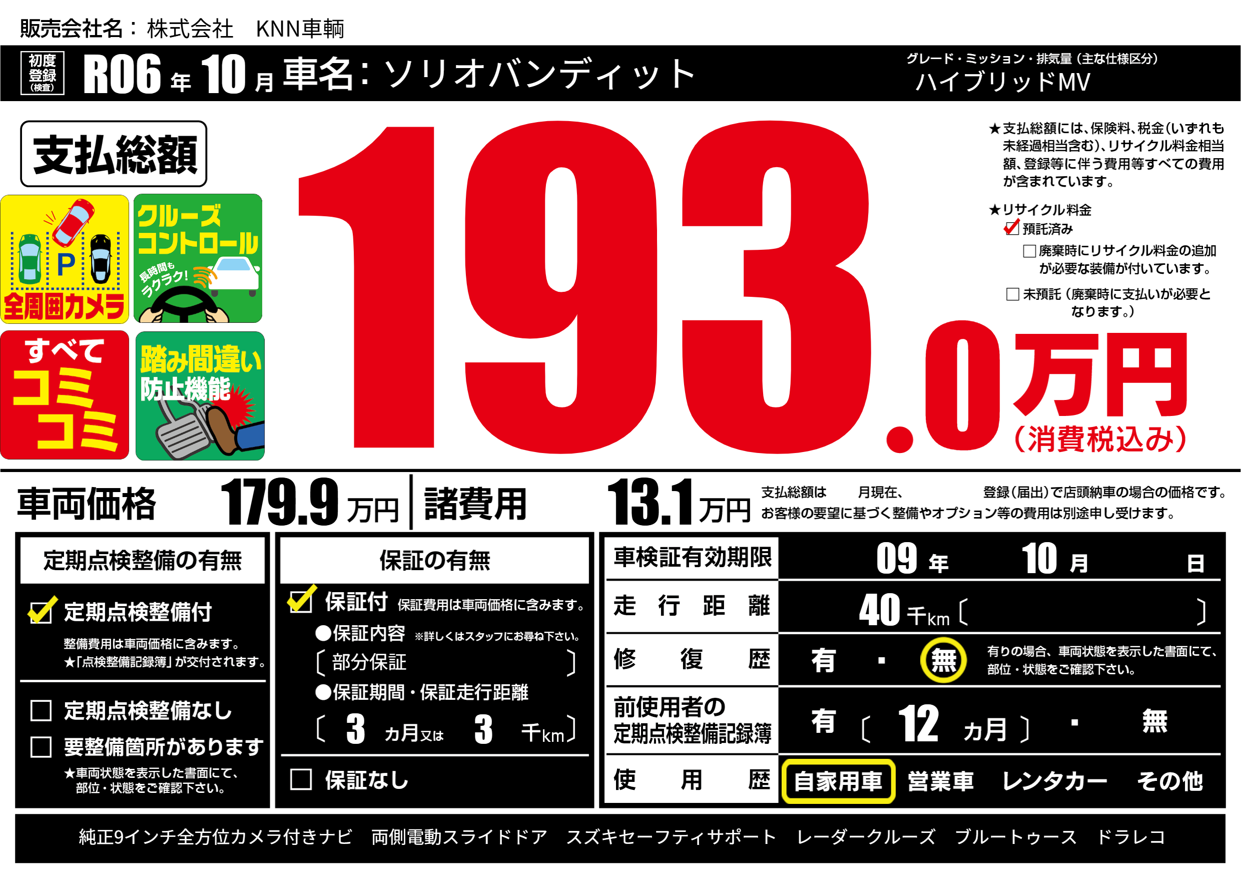 | 車検制限 | 09年 10月 - 日 | ||