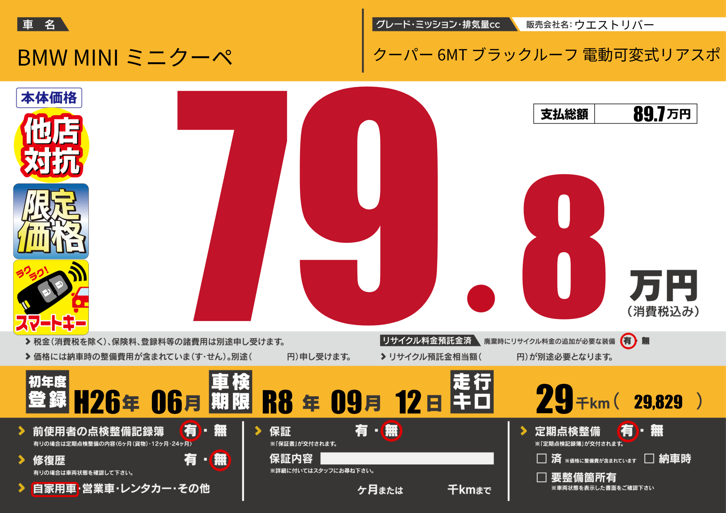 | 走行キロ | 2.9万km | ||