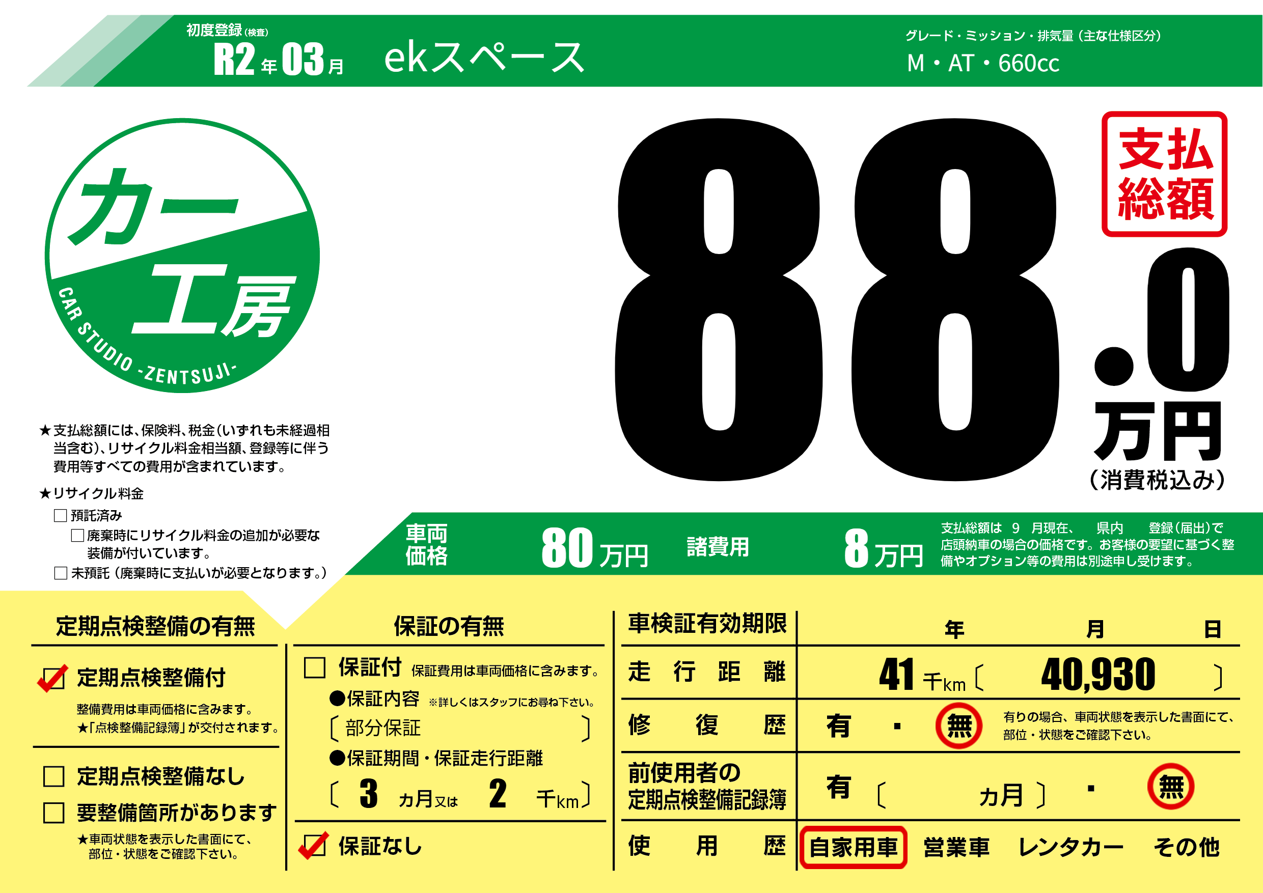 | 車名 | ekスペース | グレード ミッション 排気量 |