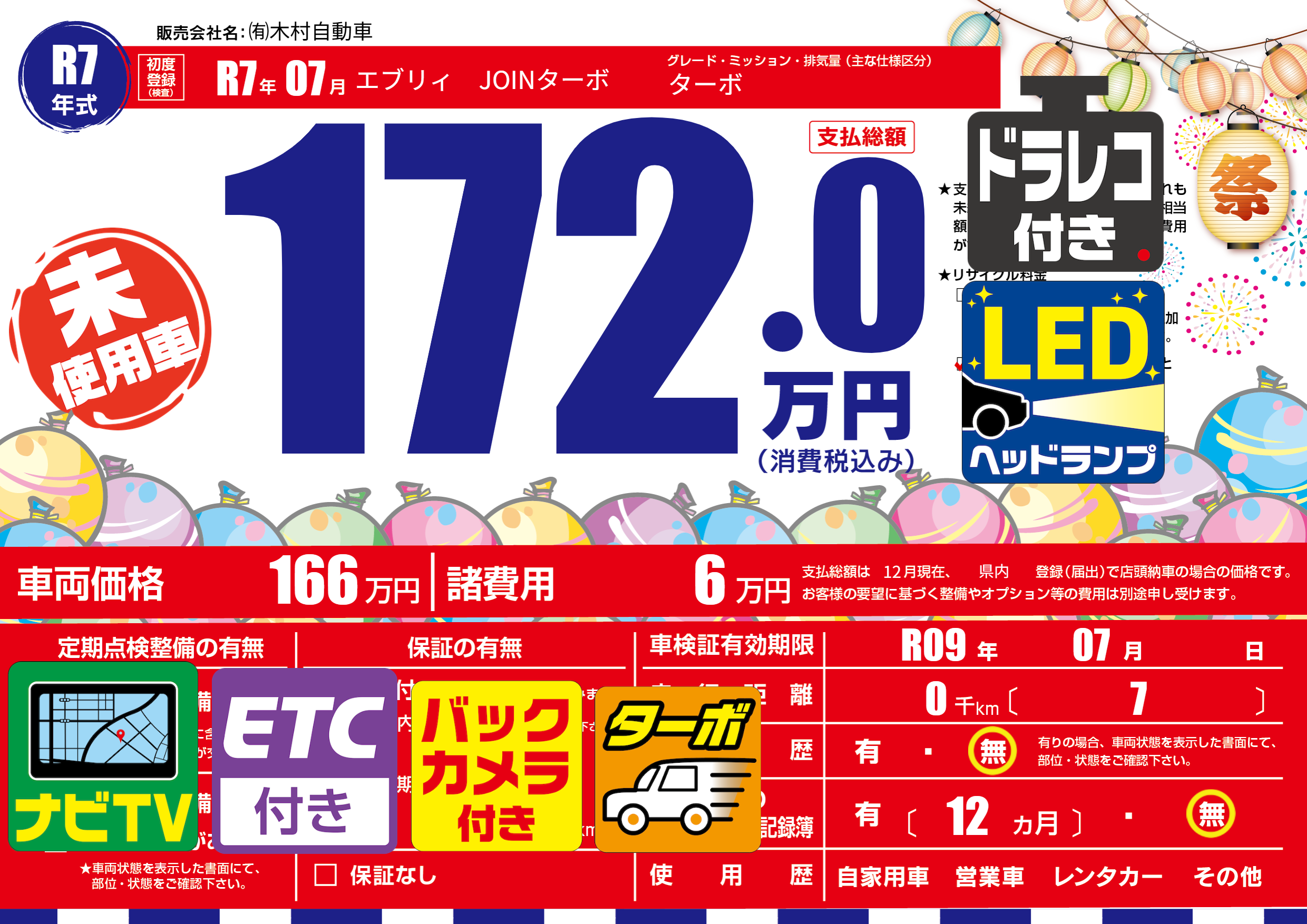 なし | 車検制限 | R09年07月---月 |