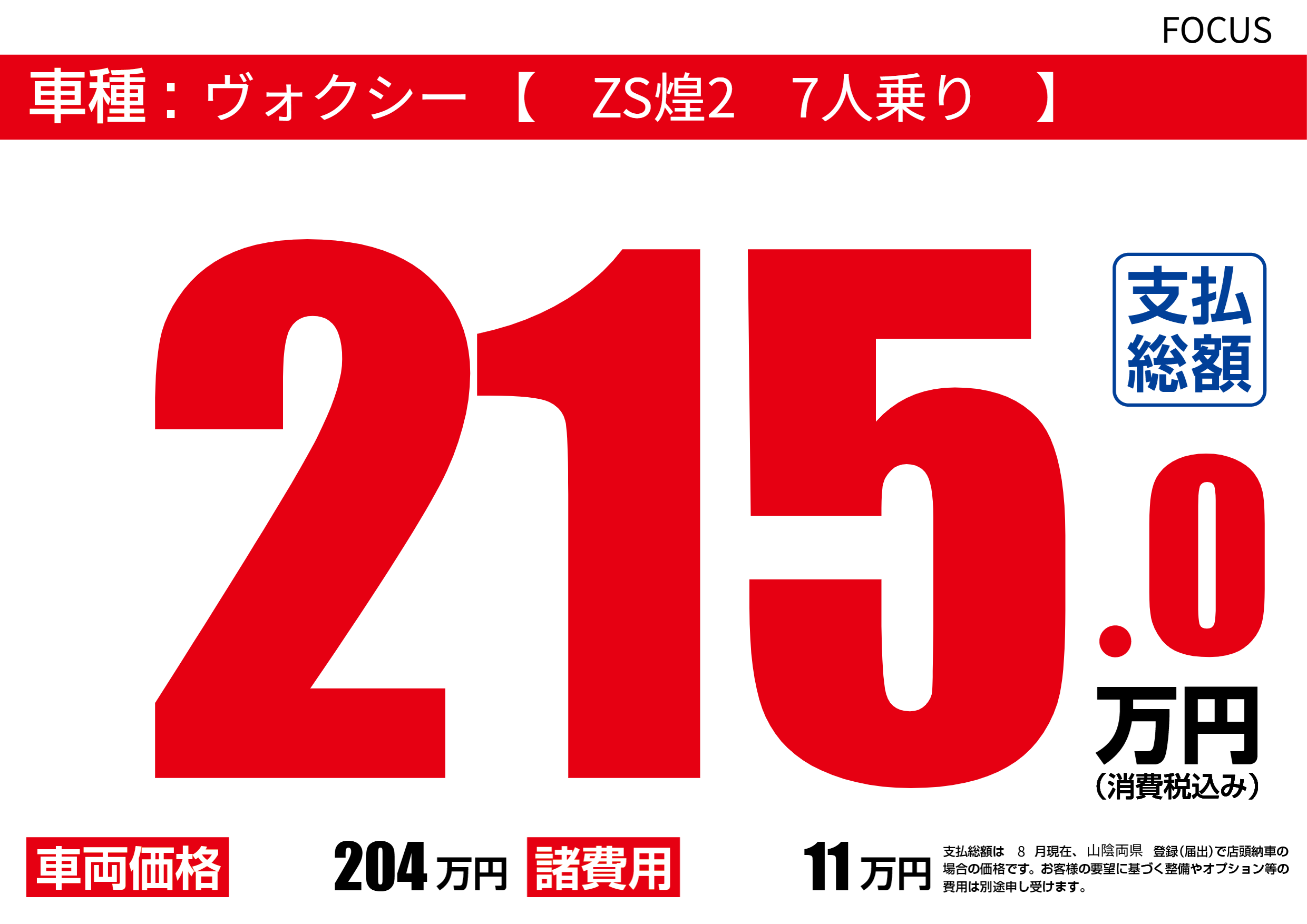 ヴォクシー 【 ZS煌2 7人乗り 】