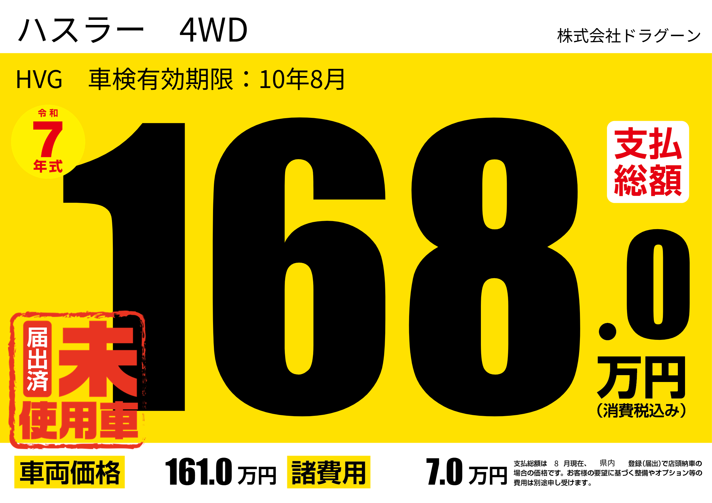 | 車名 | ハスラー 4WD | グレード ミッション 排気量 |