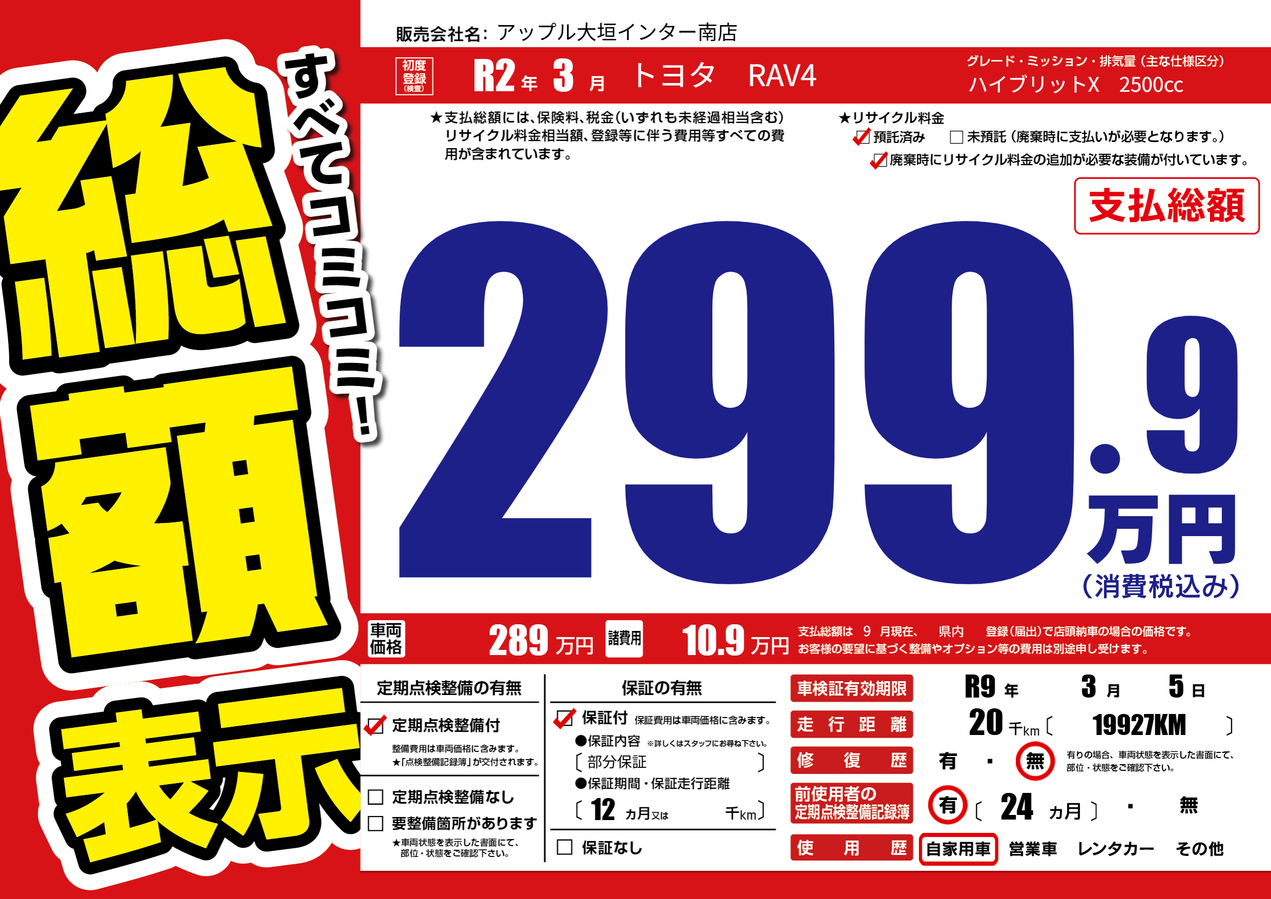 | 車検制限 | R9年 3月 5日 | ||