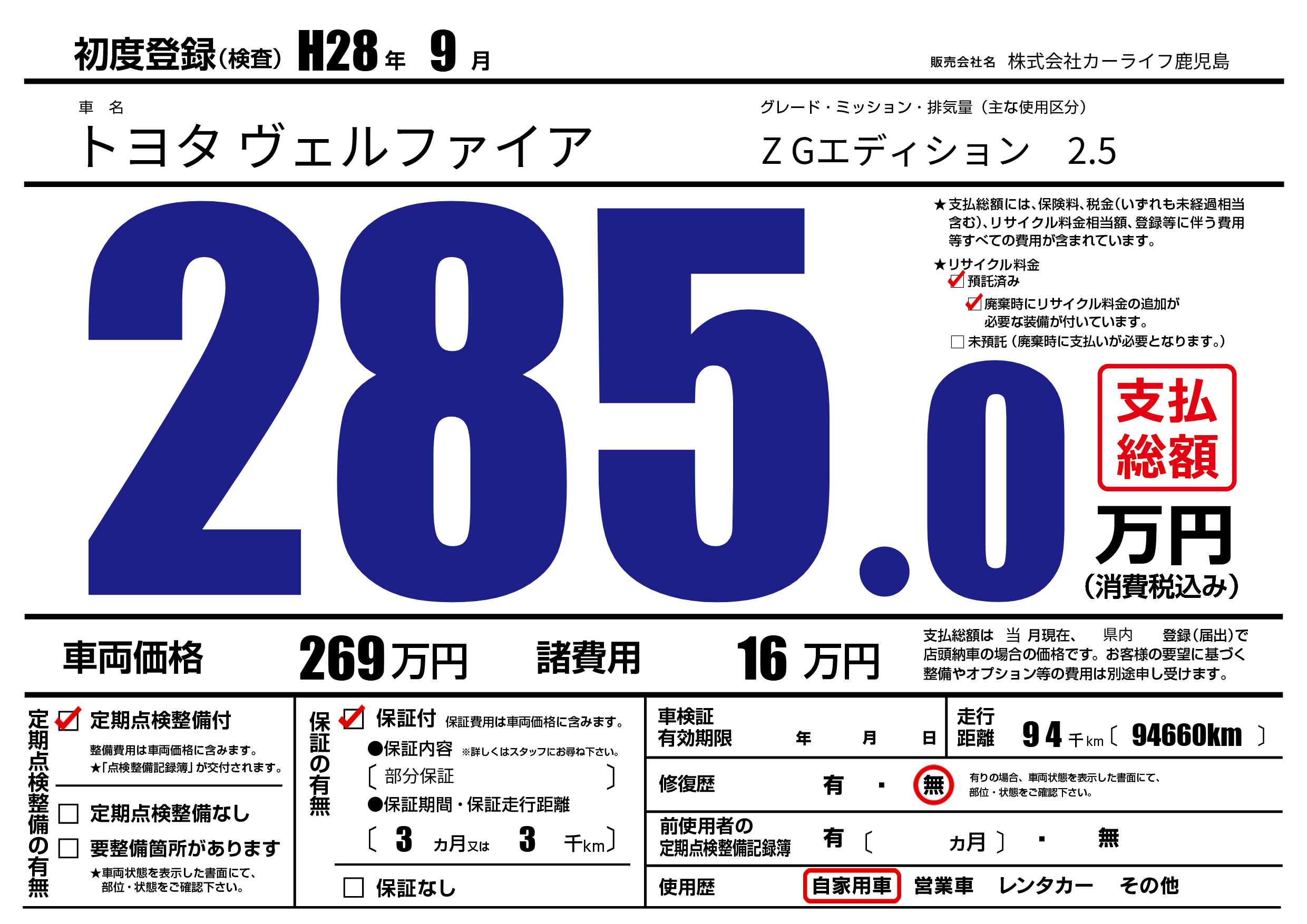 | 定期点検整備 | 定期点検整備あり | ||