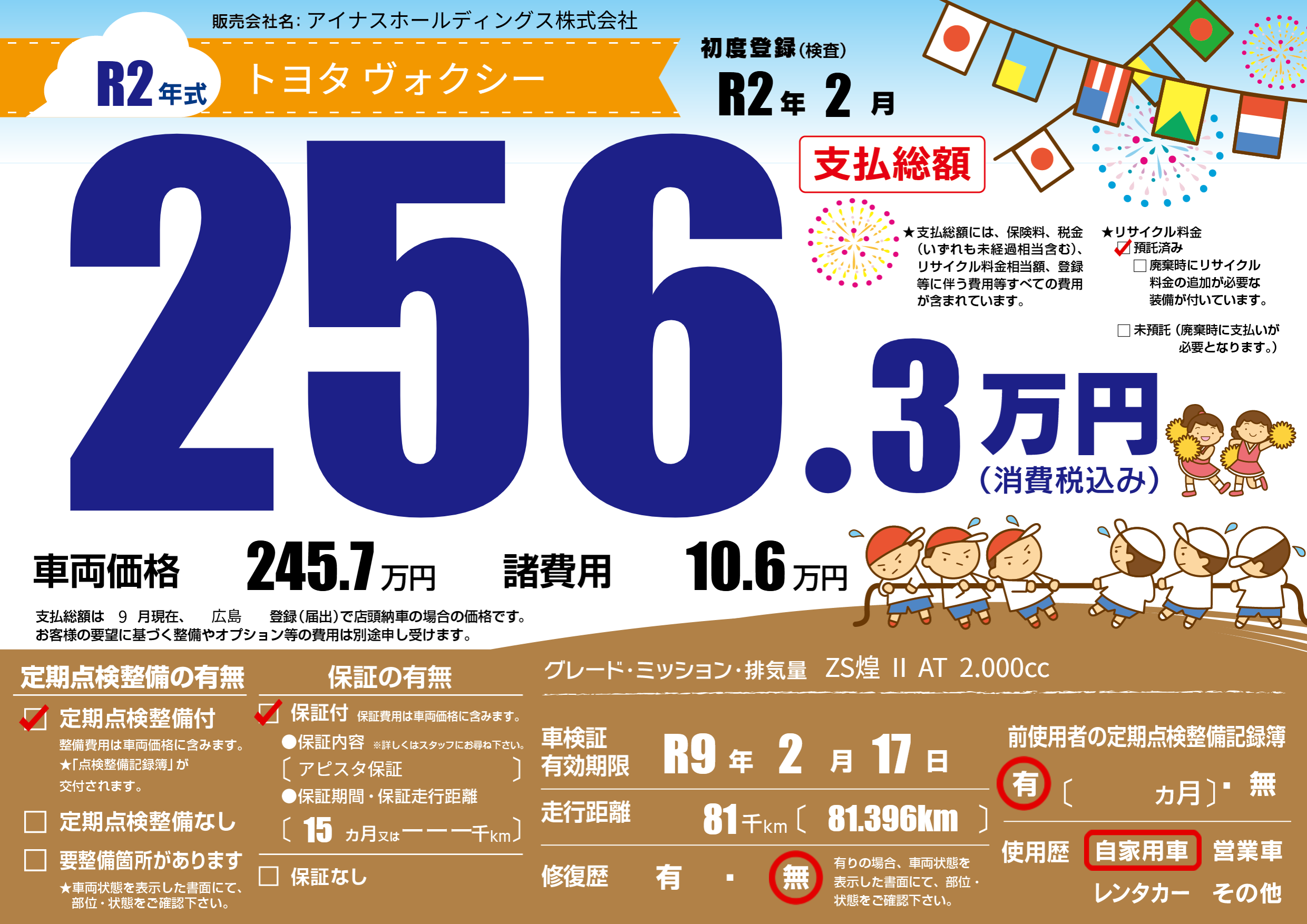 | 車名 | トヨタ ヴォクシー | グレード ミッション 排気量 |