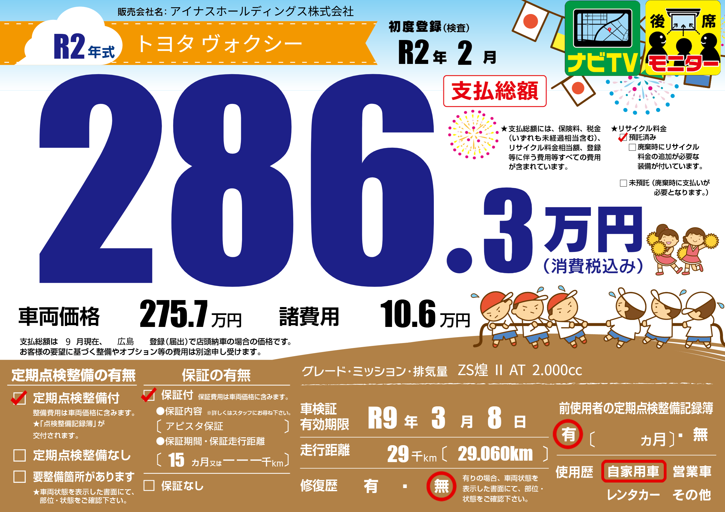 | 走行キロ | 2.9万km | 初年度登録 | R2年2月 |