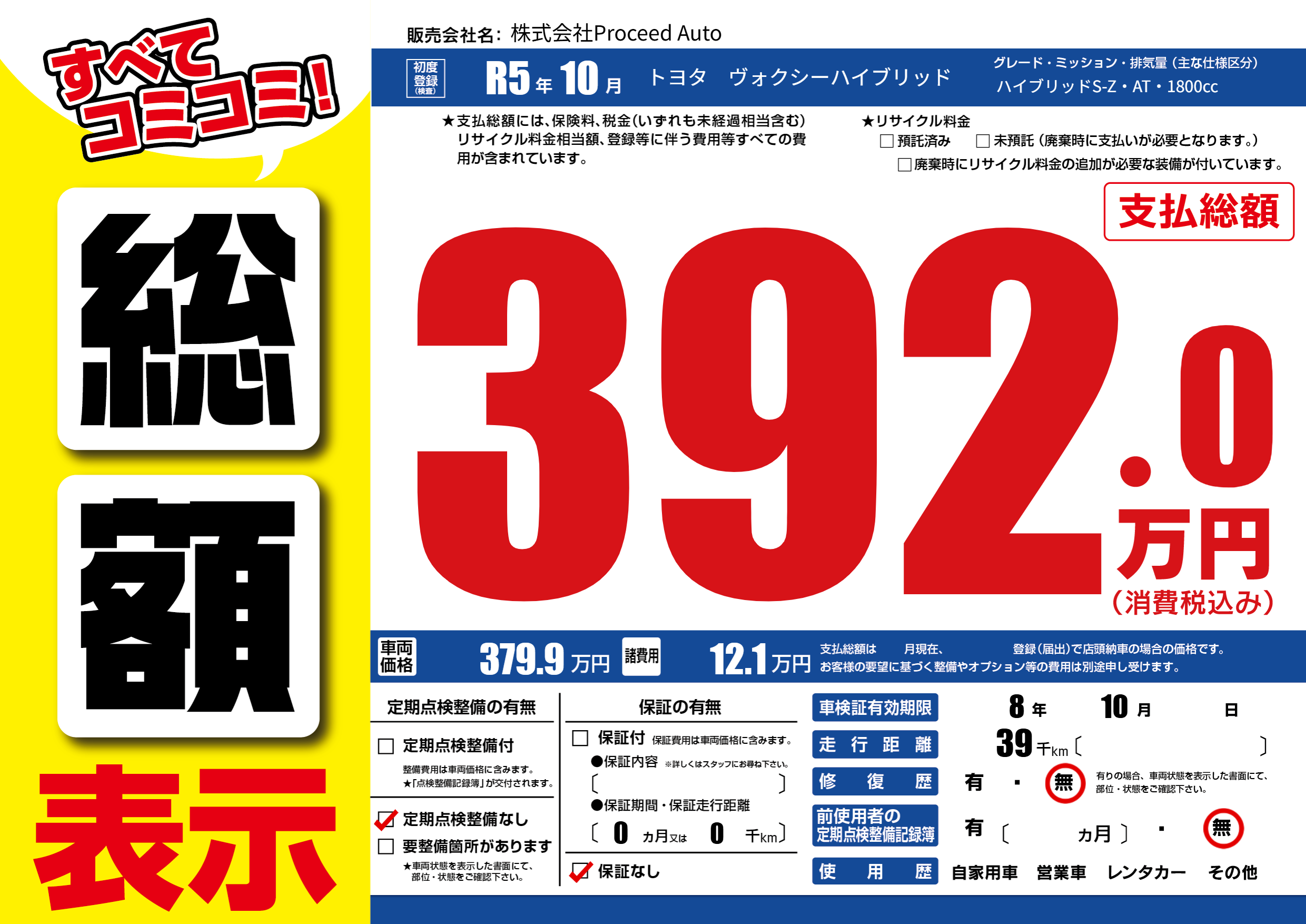| 走行キロ | 3.9万km | 初年度登録 | R5年10月 |