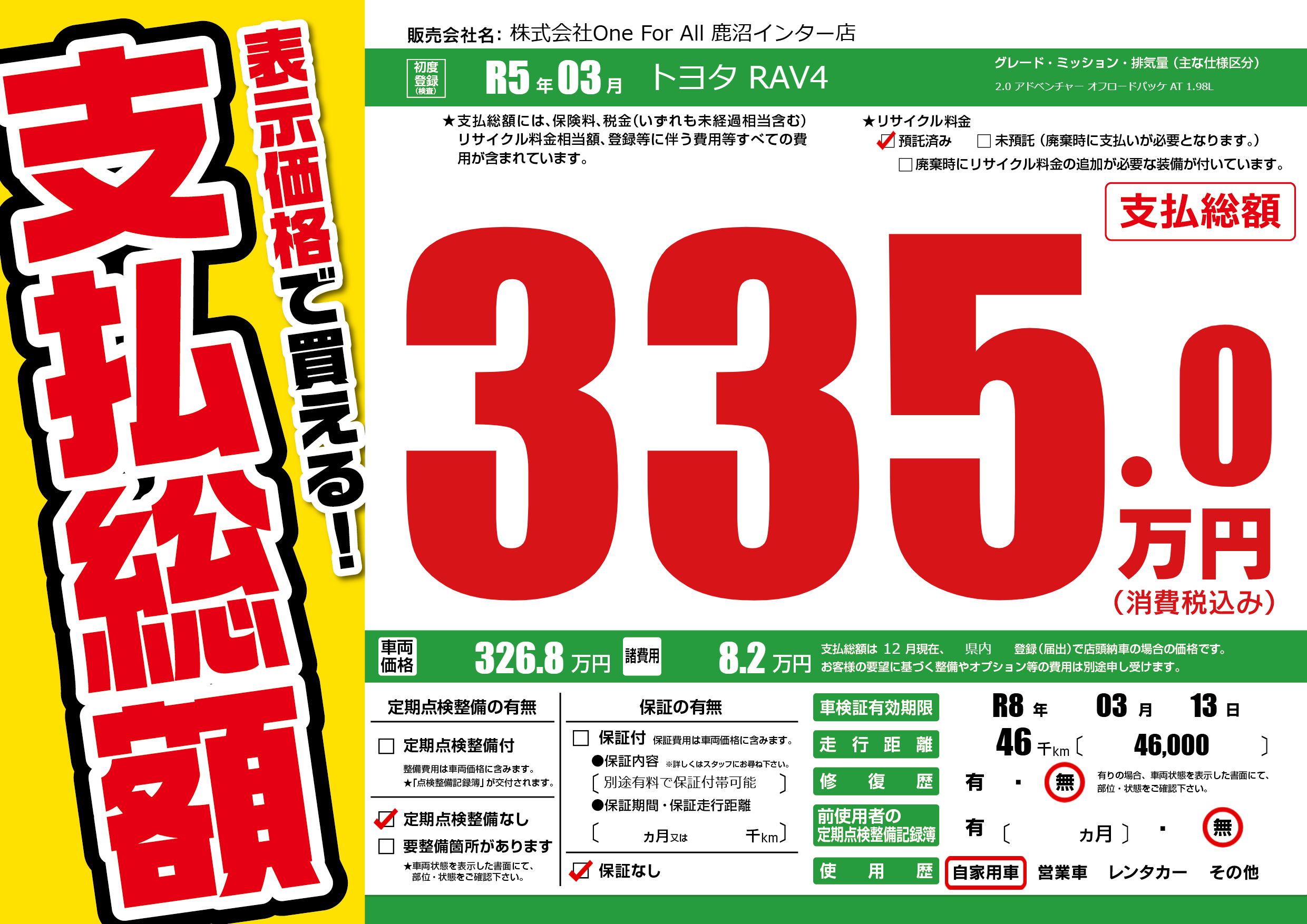 なし | 車検制限 | R8年03月13月 |