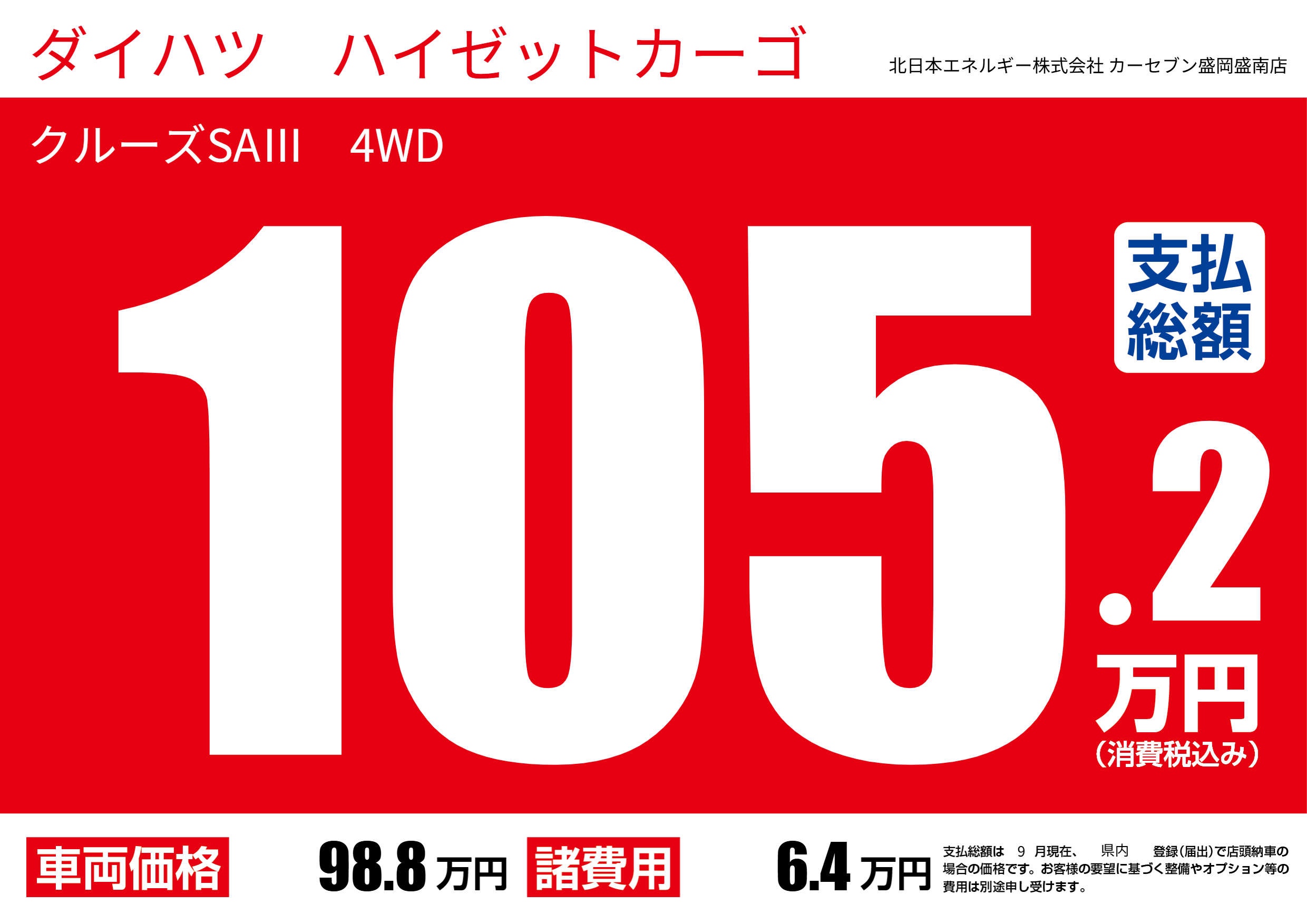 | 車名 | ダイハツ ハイゼットカーゴ | グレード ミッション 排気量 |