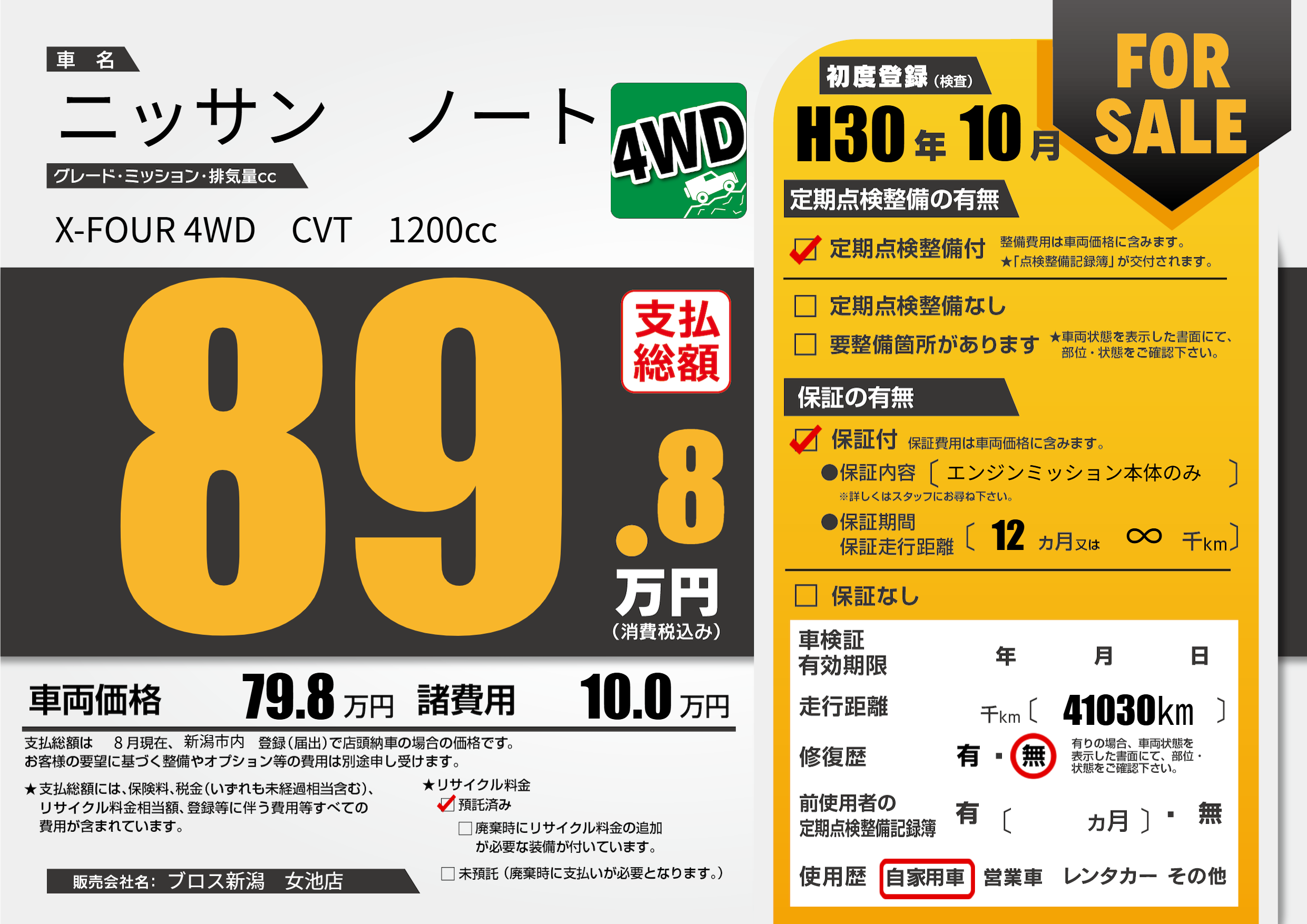 保証付き 保証内容(エンジンミッション本体のみ) 12ヶ月または(∞)千kmまで |