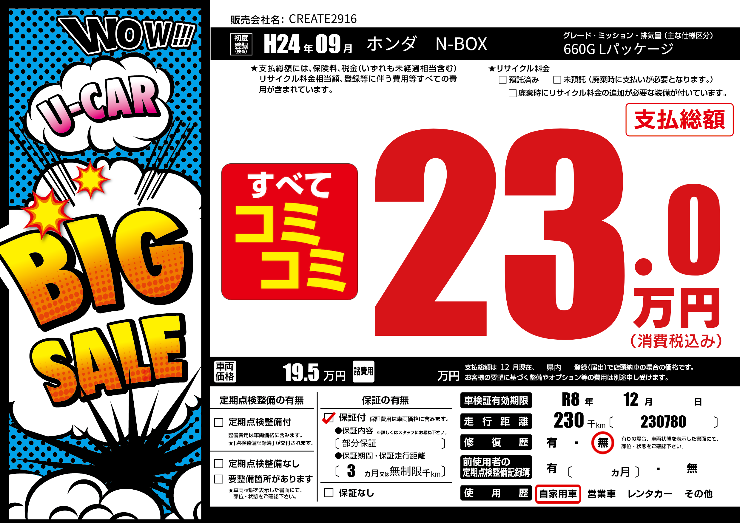| 車検制限 | R8年 12月 - 日 | ||