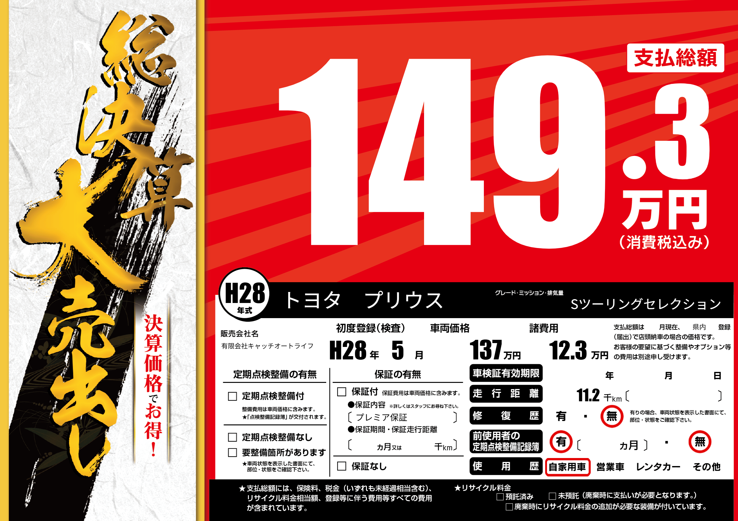 | 車名 | トヨタ プリウス | グレード ミッション 排気量 |