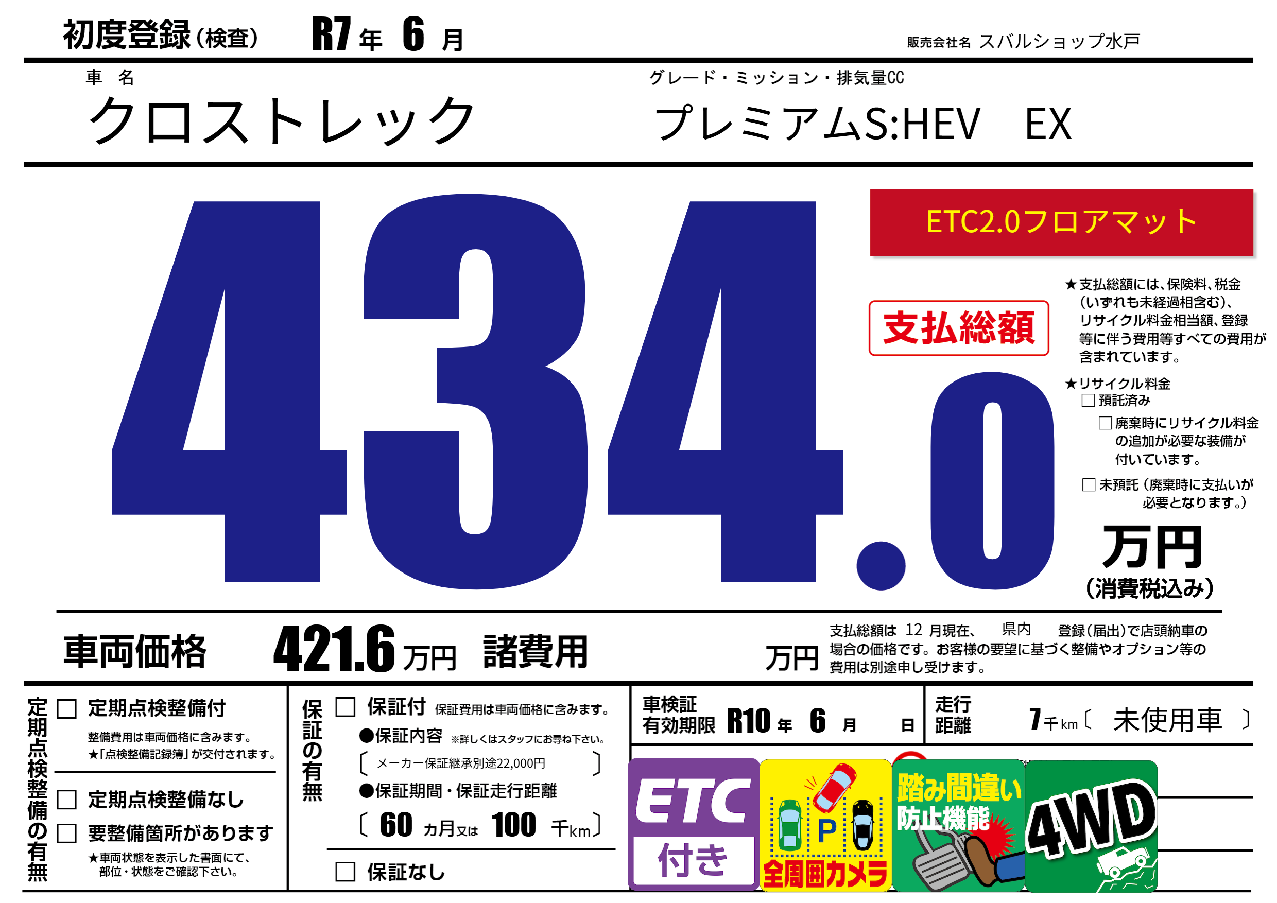 | 車名 | クロストレック | グレード ミッション 排気量 |