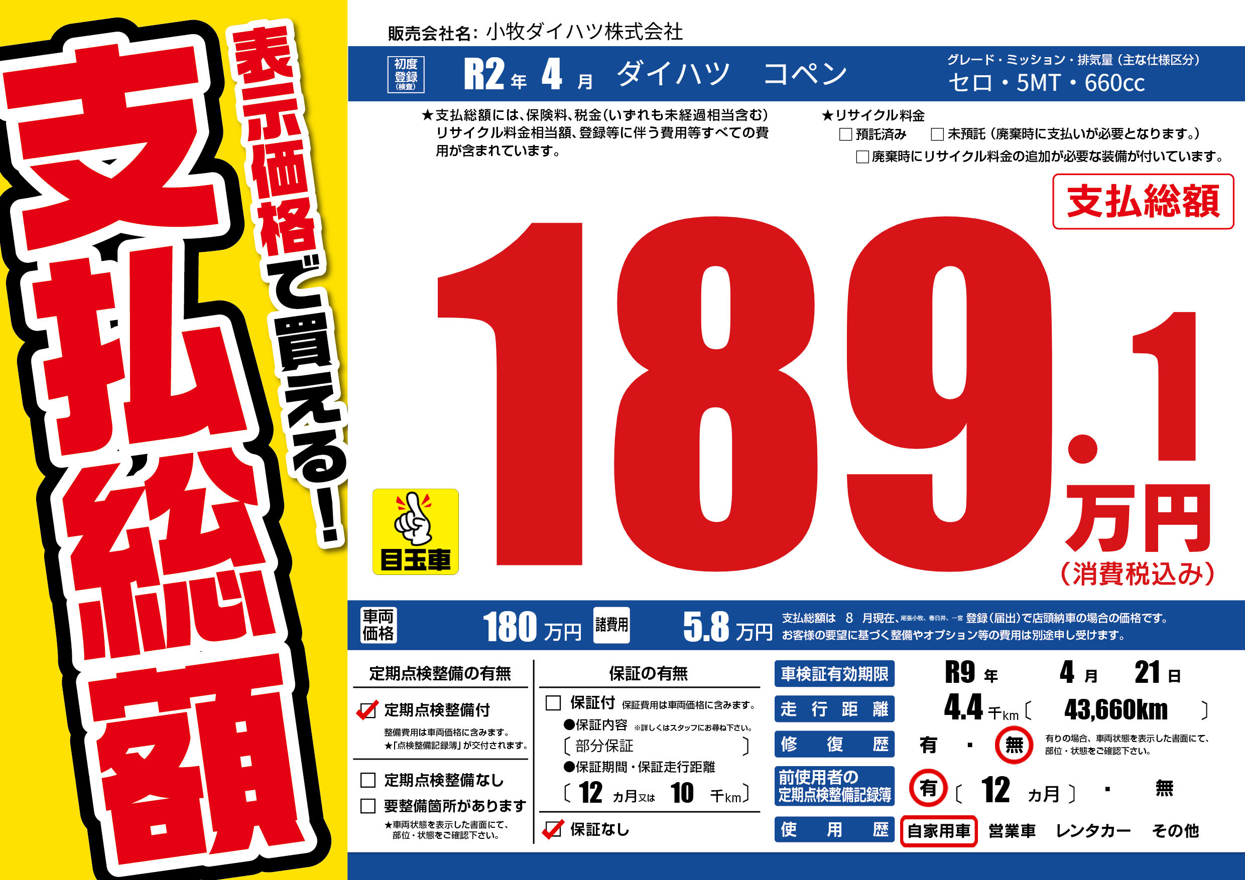 なし | 車検制限 | R9年4月21月 |