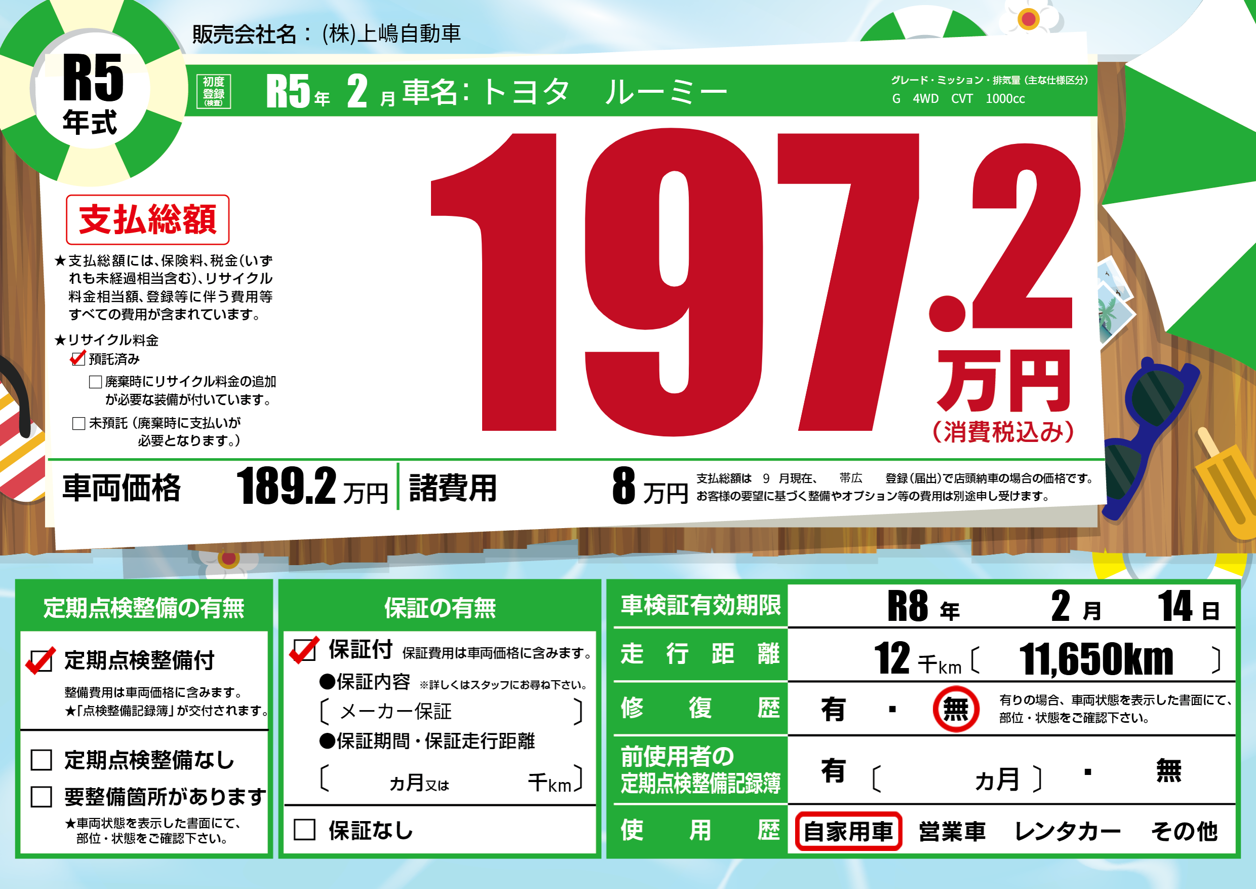 なし | 車検制限 | R8年2月14月 |