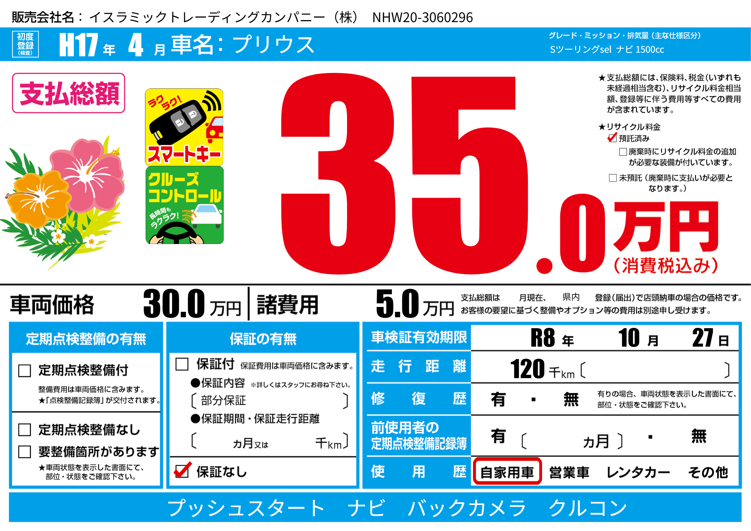 | 車検制限 | R8年 10月 27日 | ||