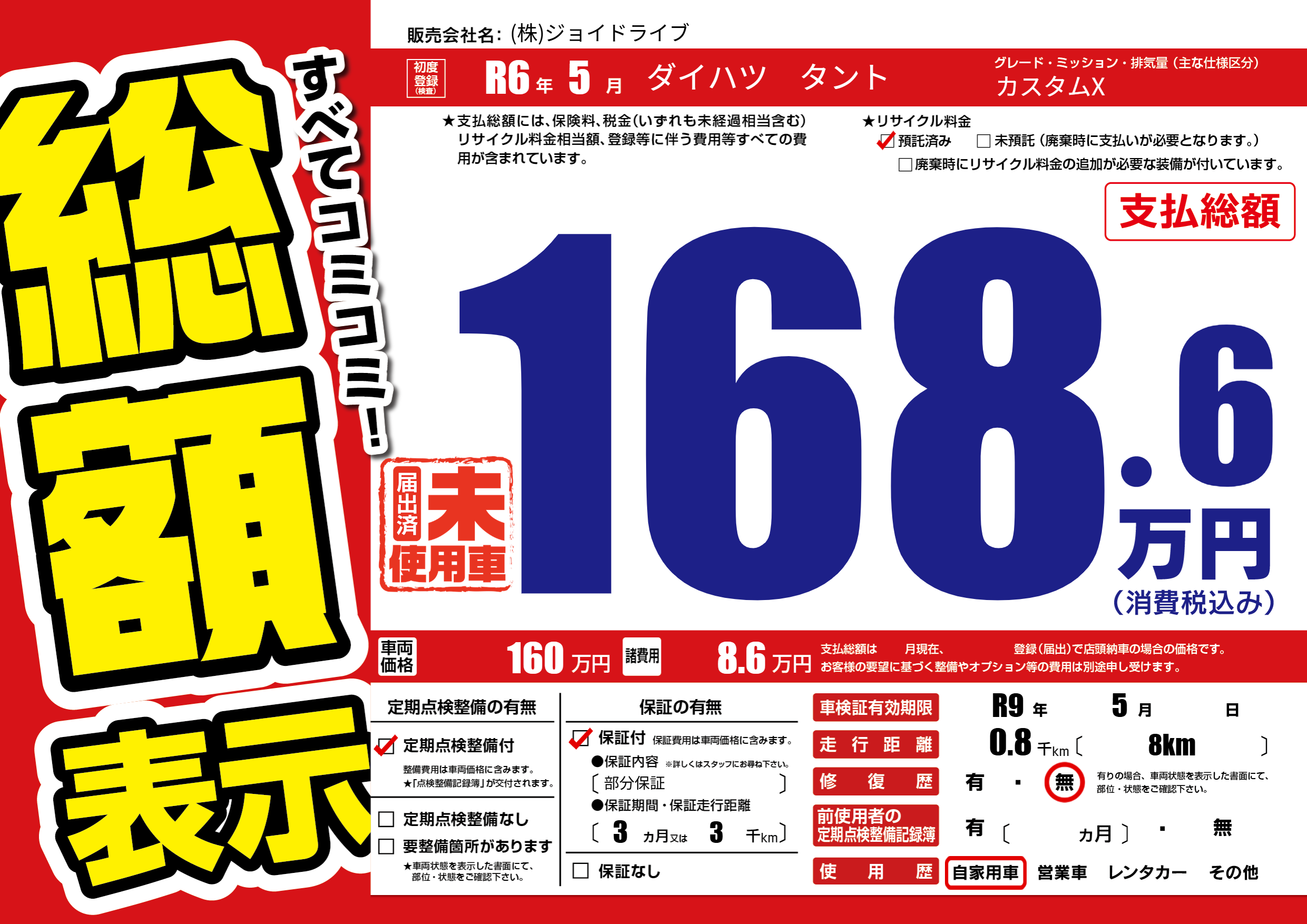 | 走行キロ | - | 初年度登録 | R6年5月 |