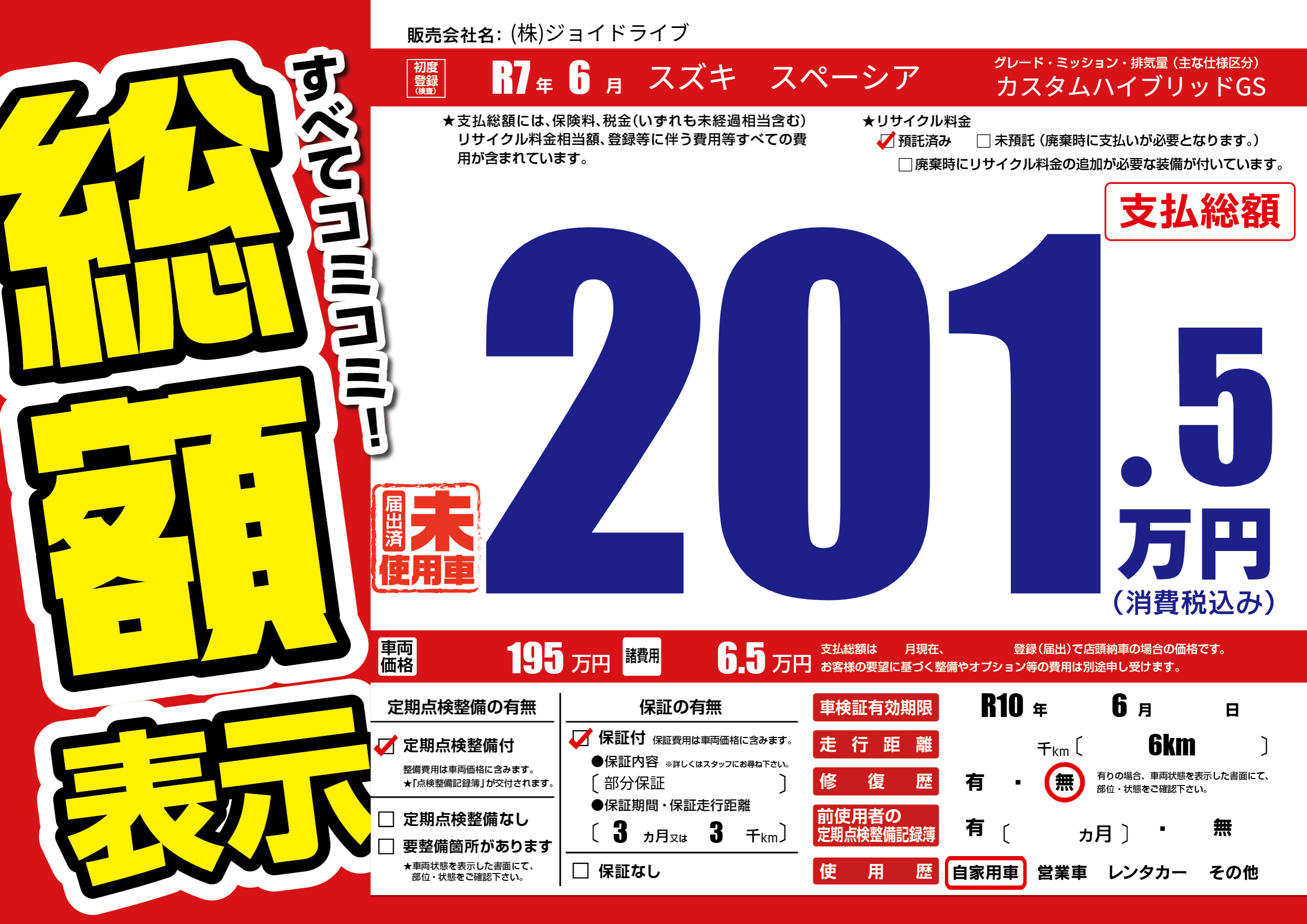 | 走行キロ | - | 初年度登録 | R7年6月 |