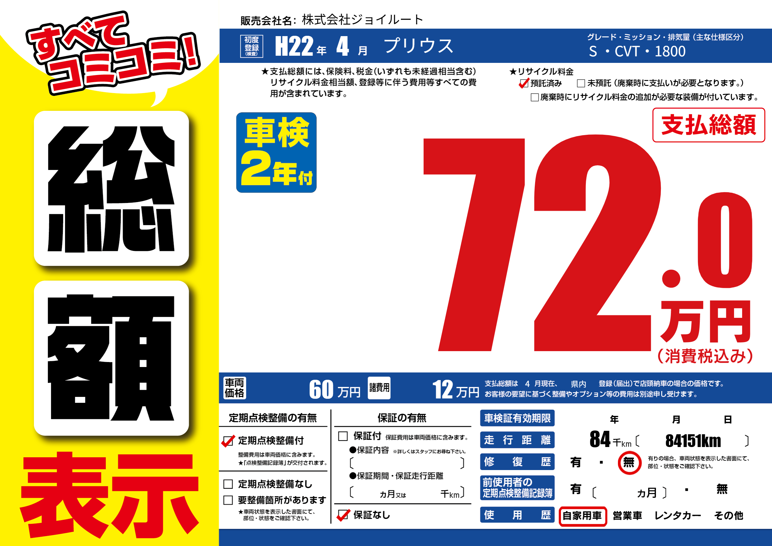 | 車名 | プリウス | グレード ミッション 排気量 |
