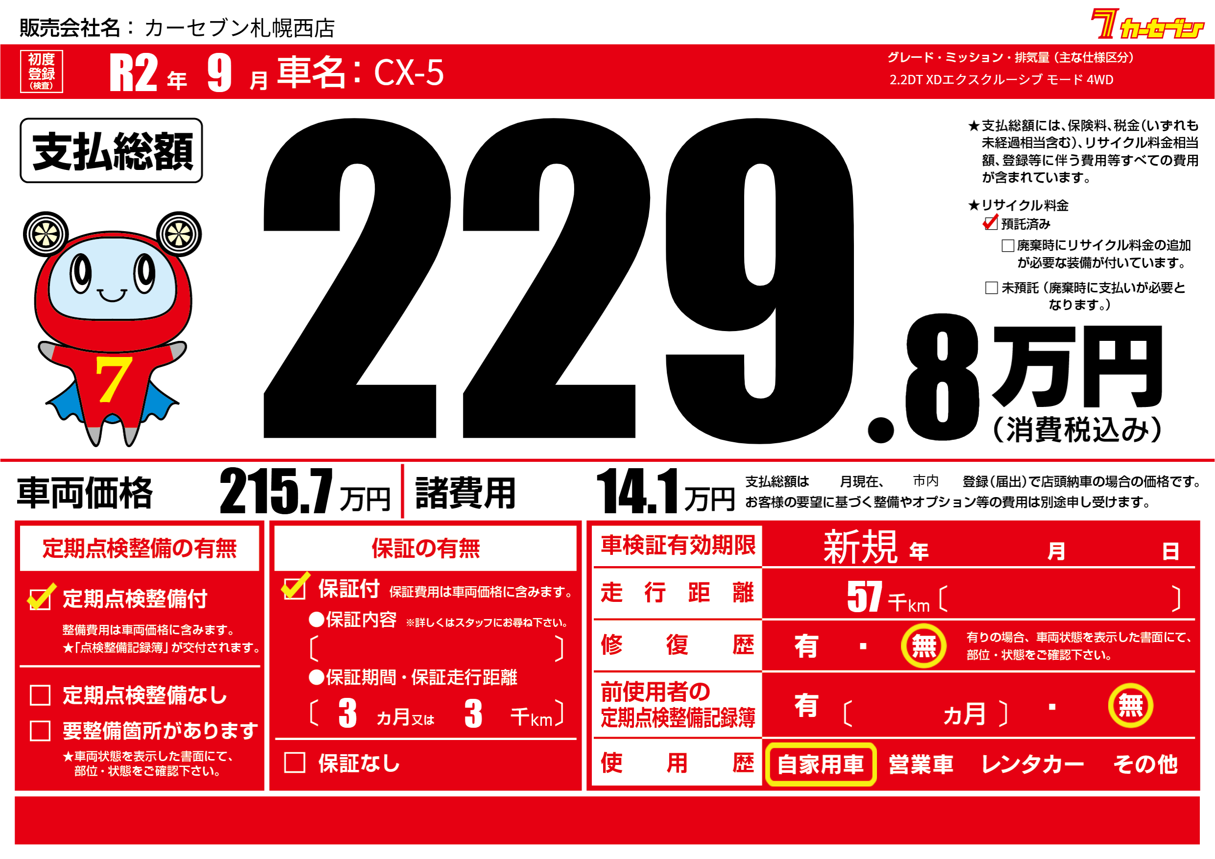 | 走行キロ | 5.7万km | ||