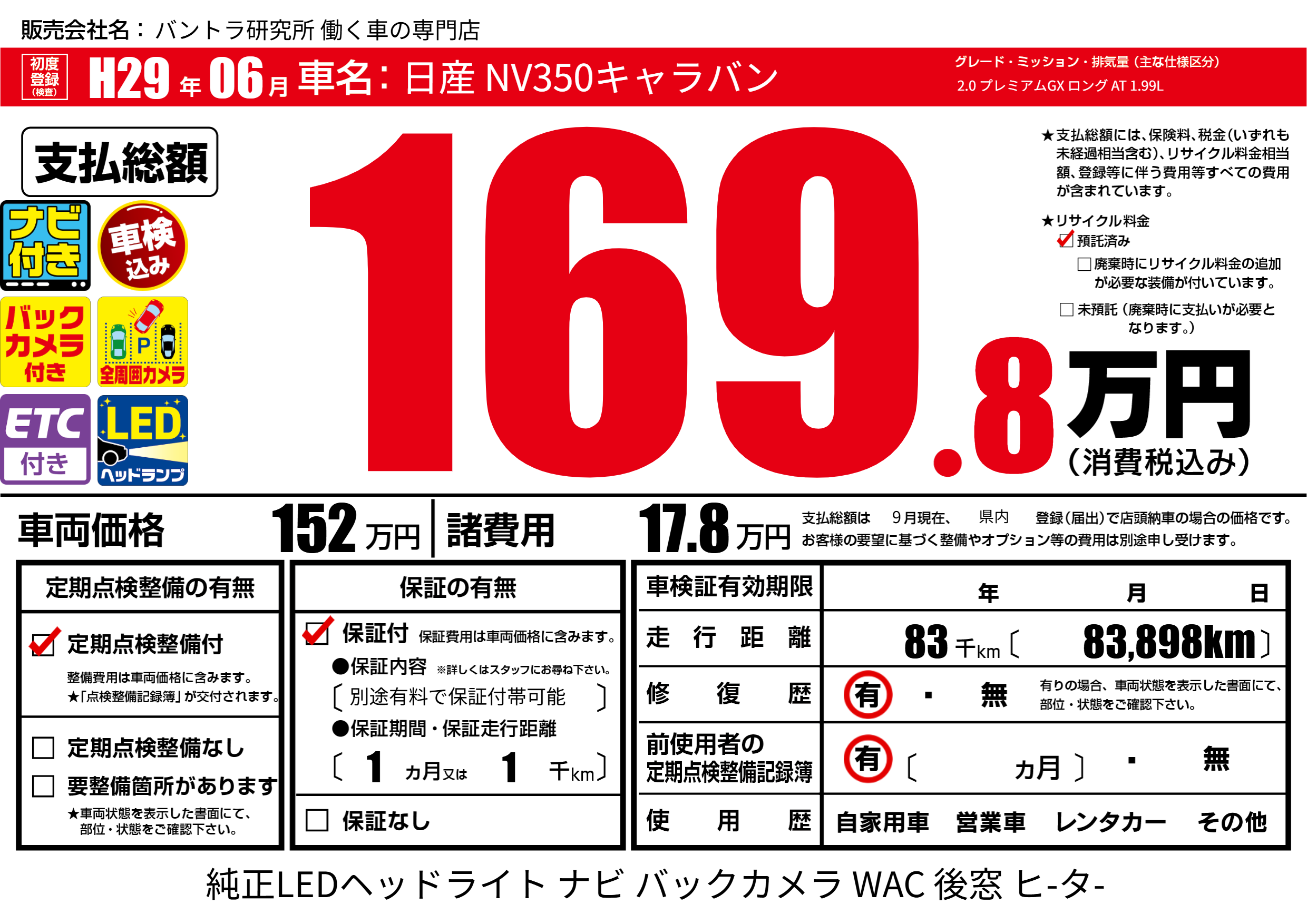 | 車名 | 日産 NV350キャラバン | グレード ミッション 排気量 |